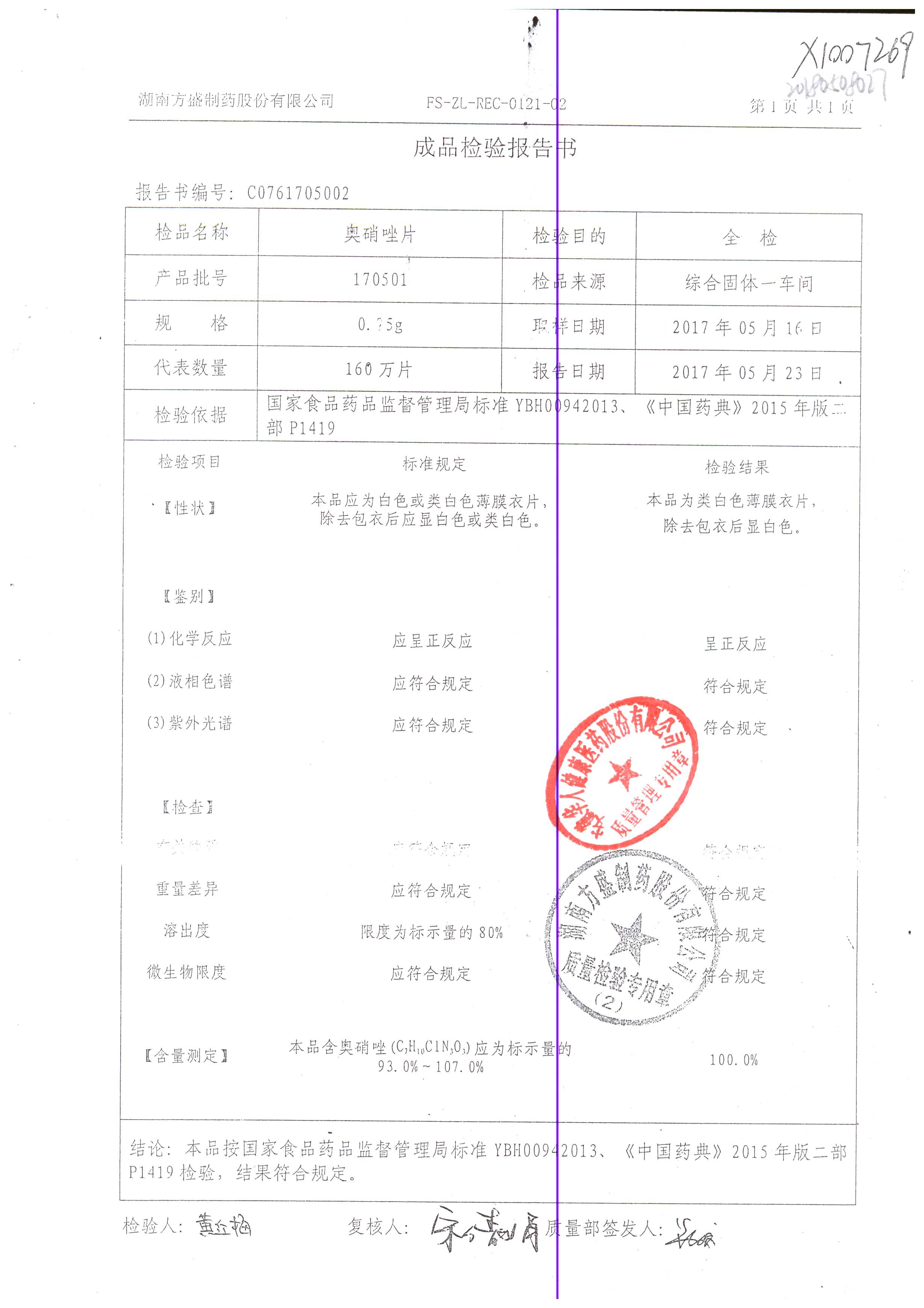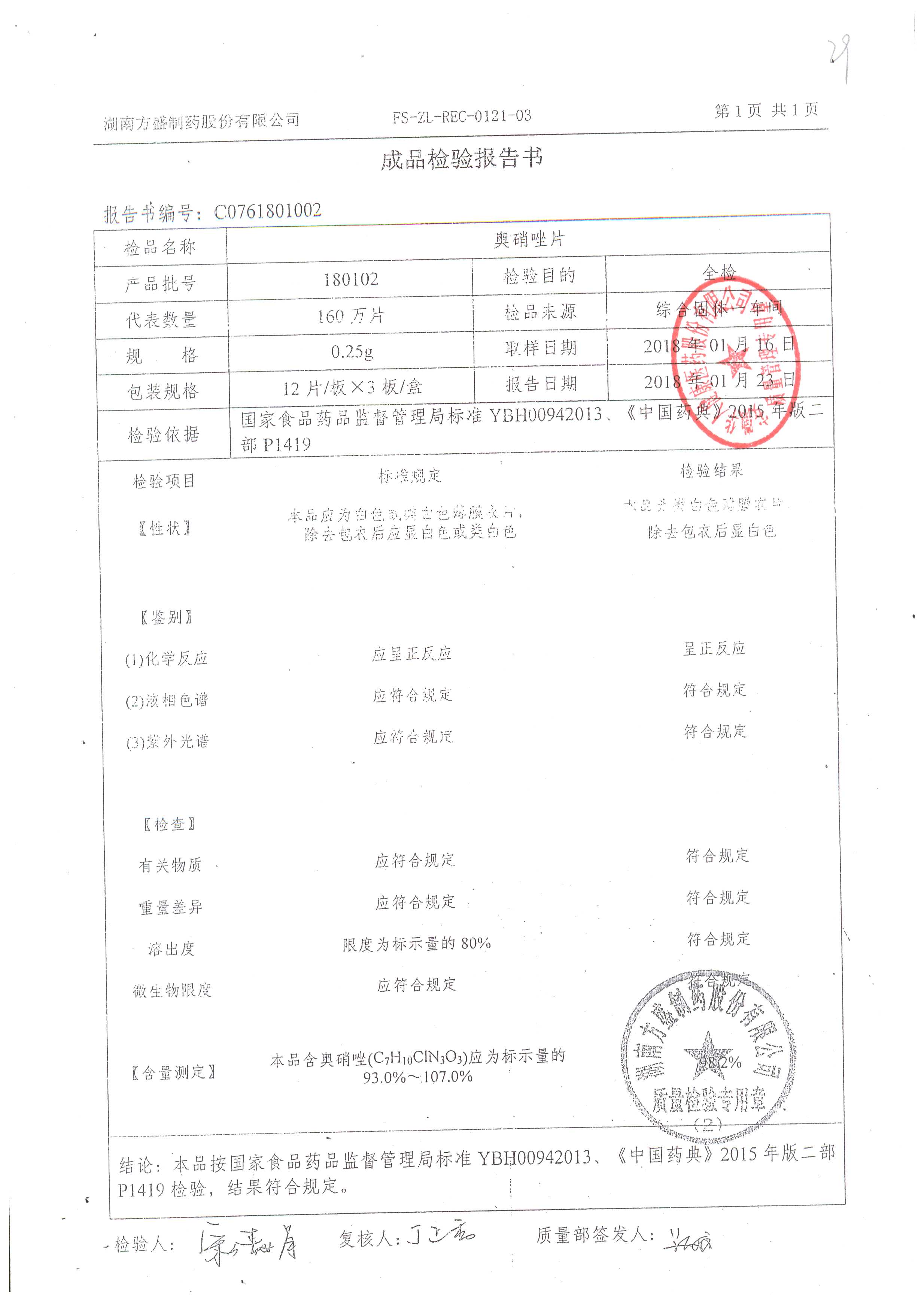 奧硝唑片 | 0.25g-36s | 180702 | 查看詳情 |