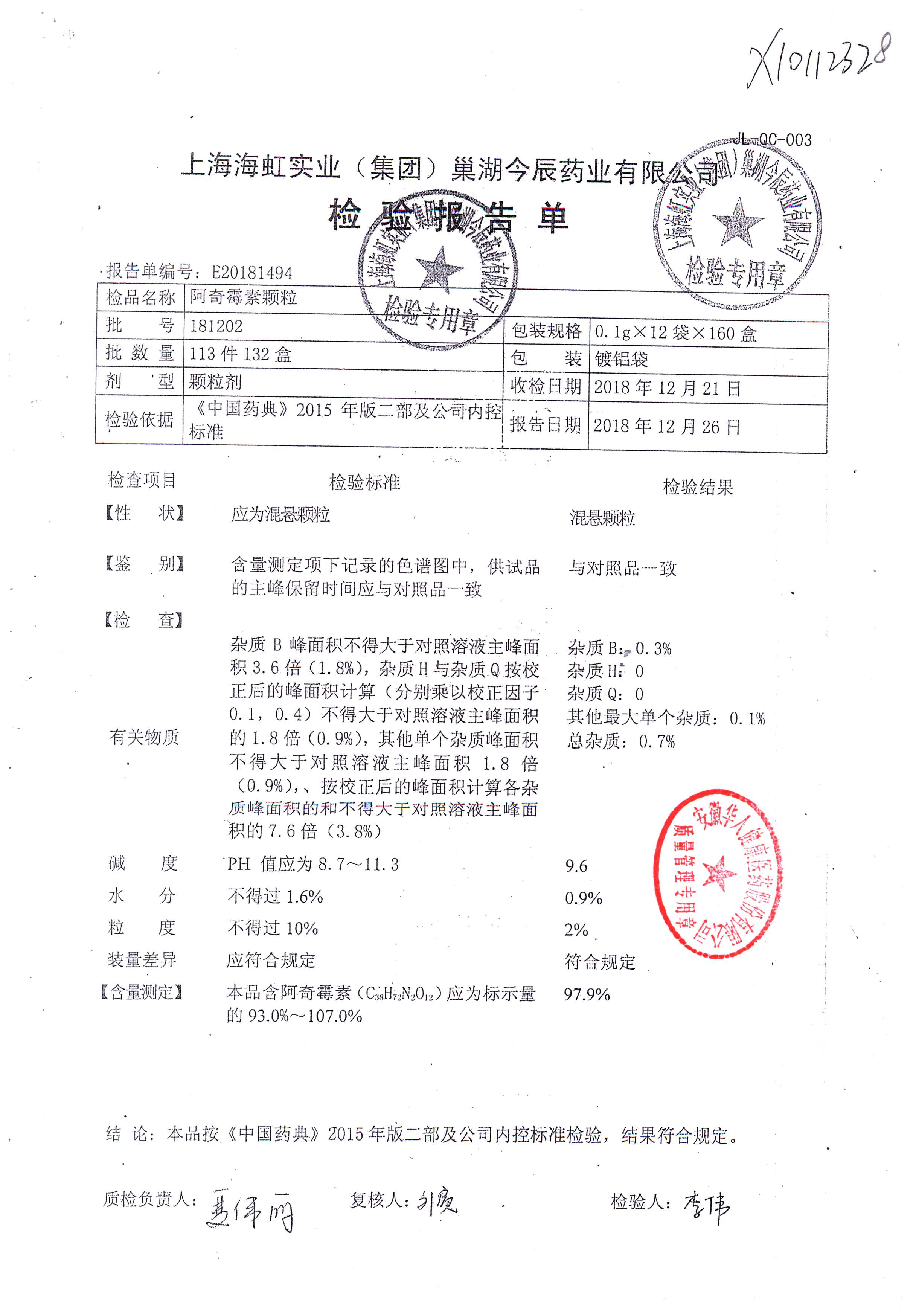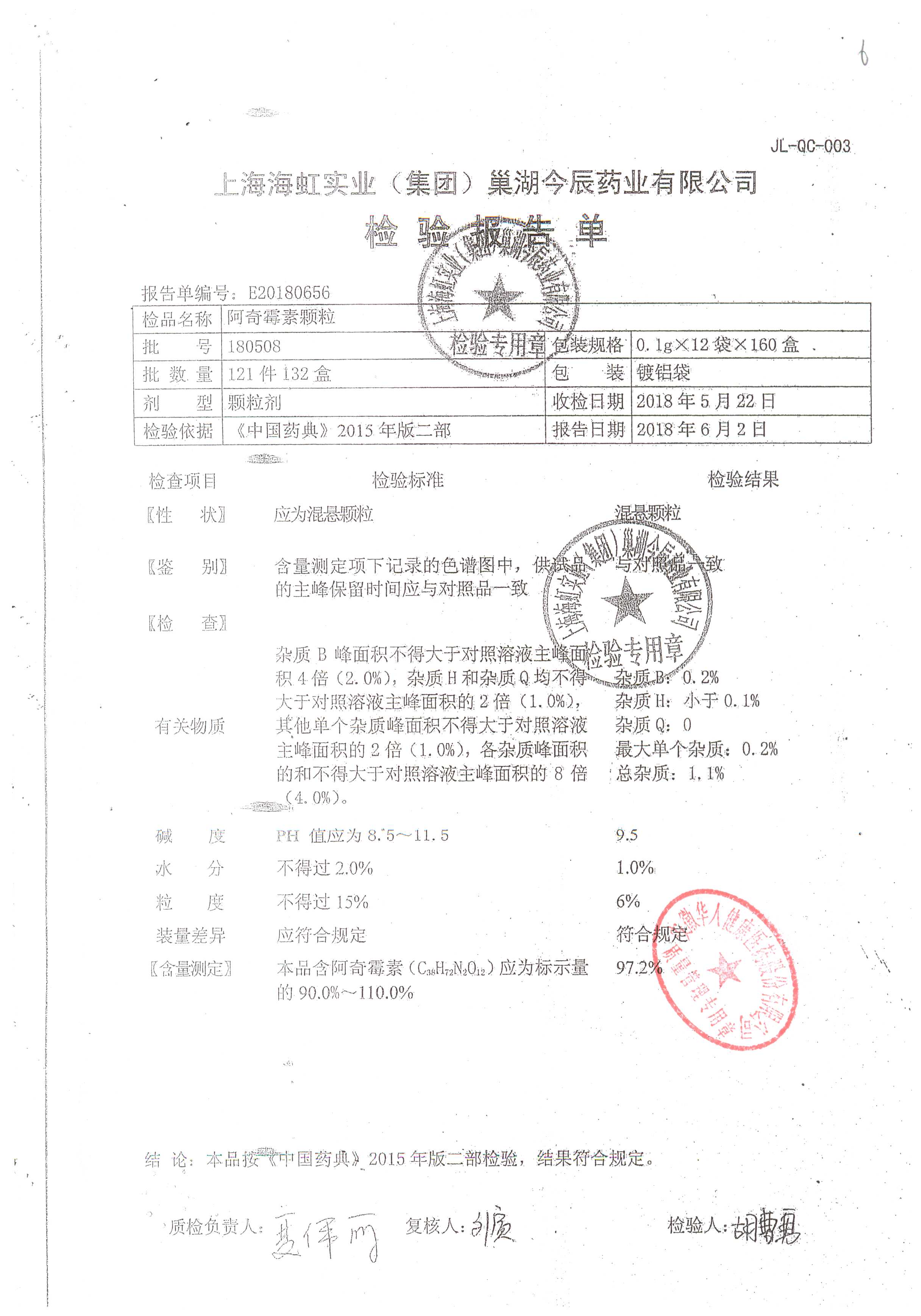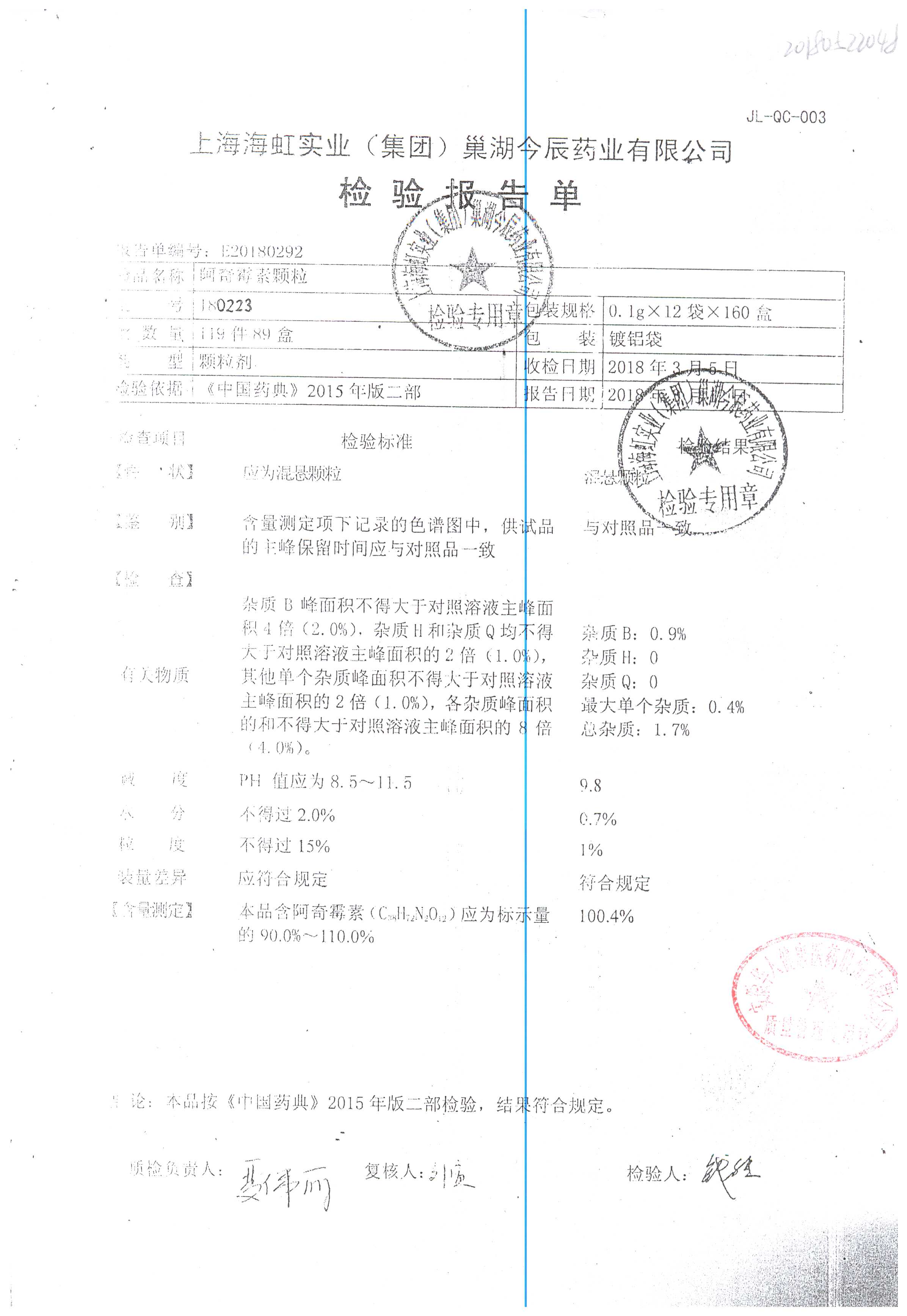 阿奇霉素顆粒 0.1g-12袋 201210 查看詳情