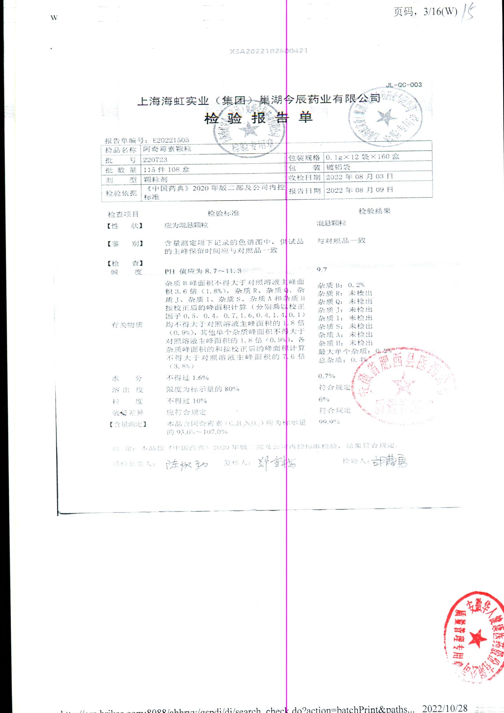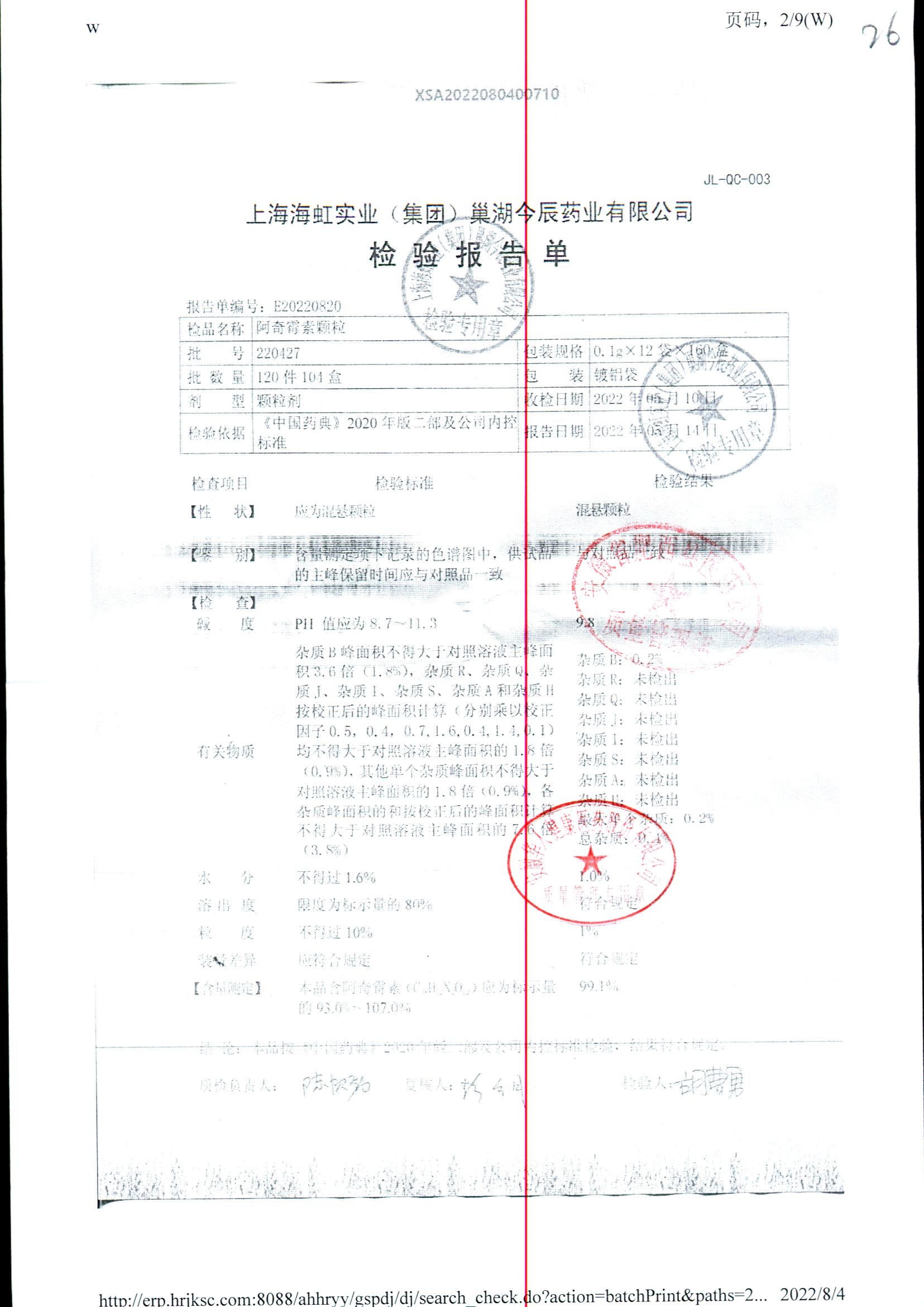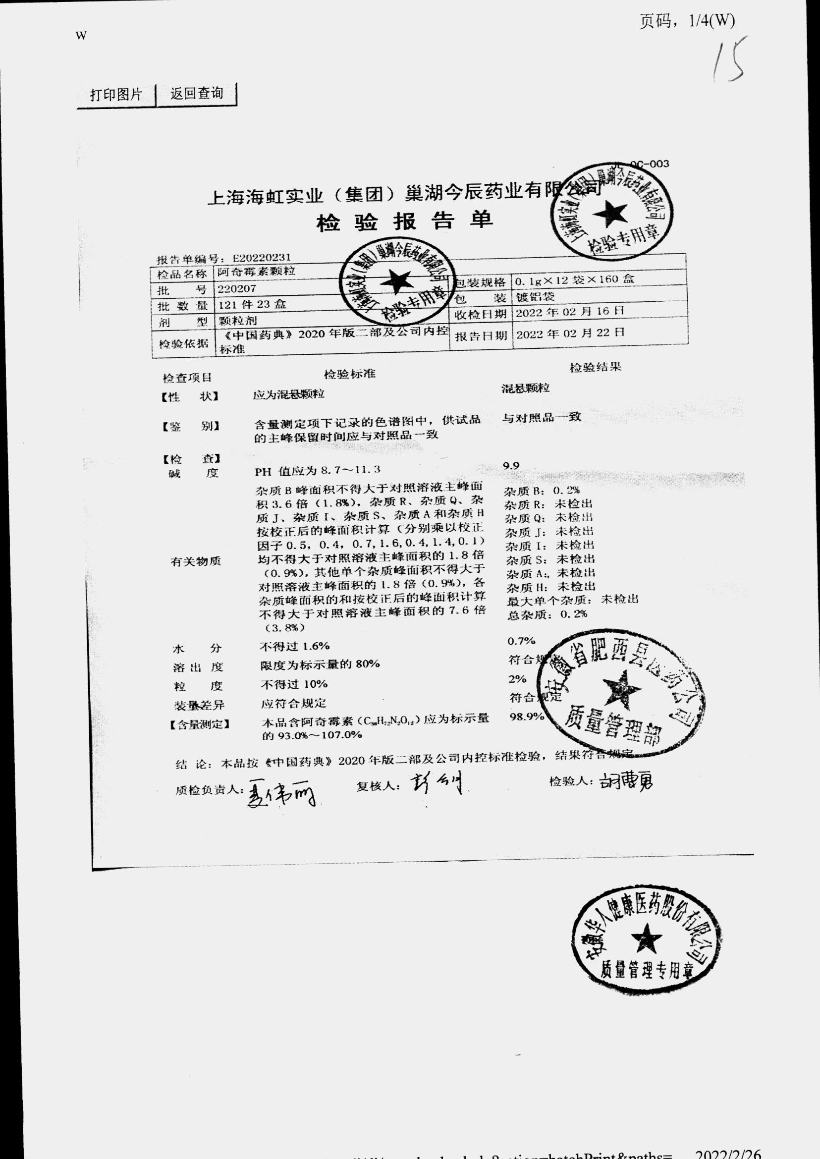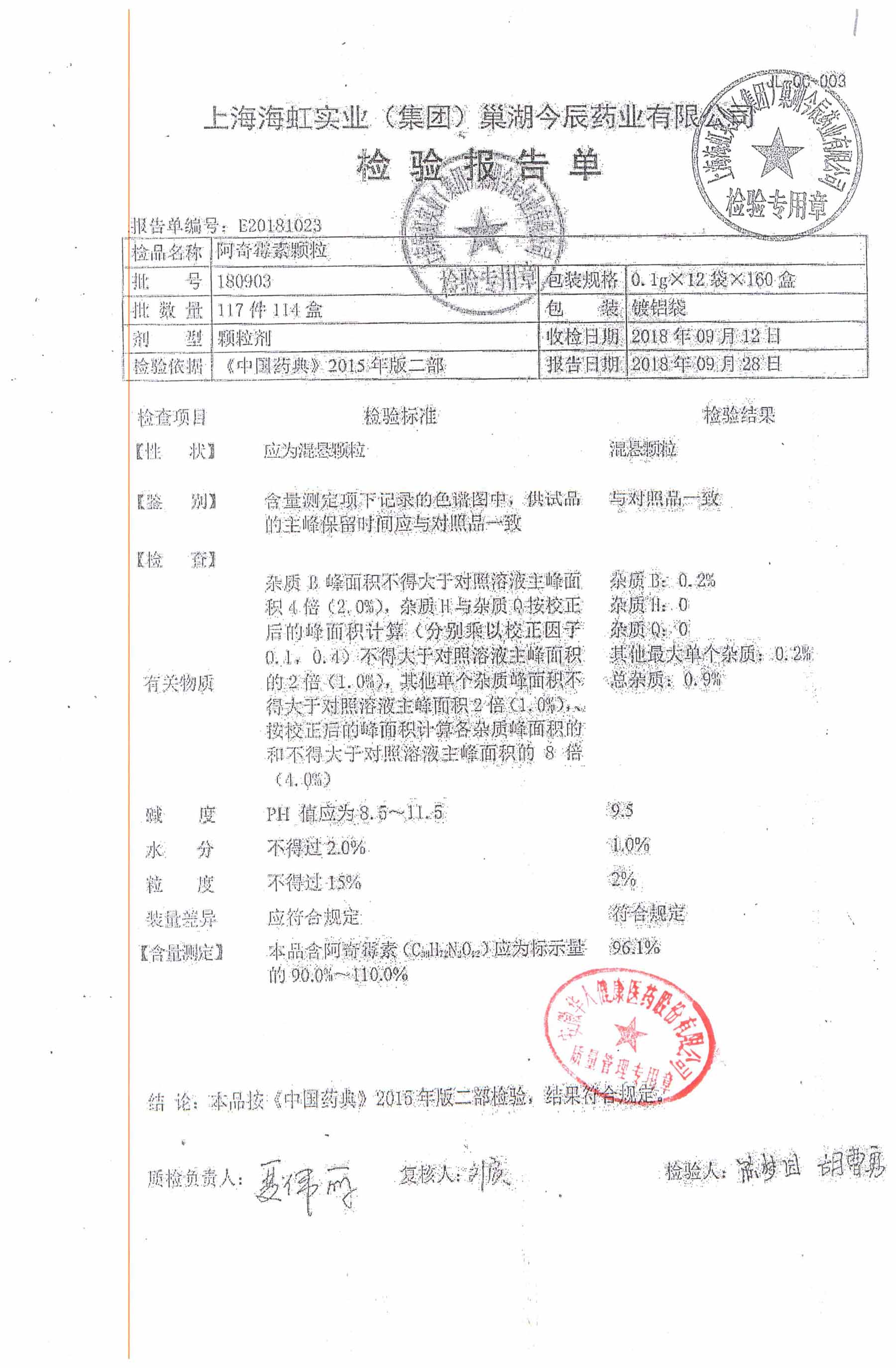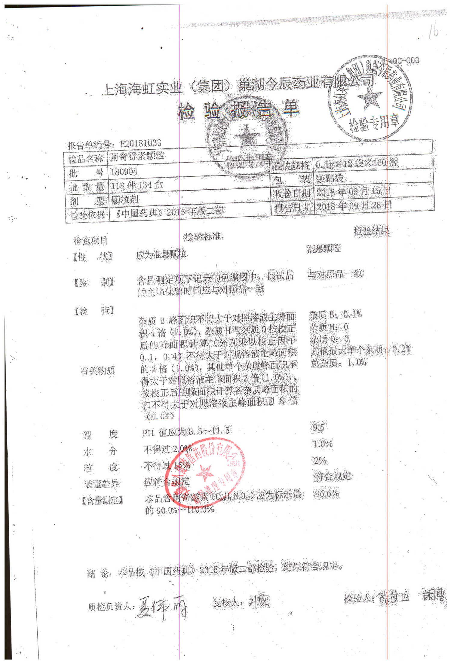 名稱 規(guī)格 批號 藥檢報告