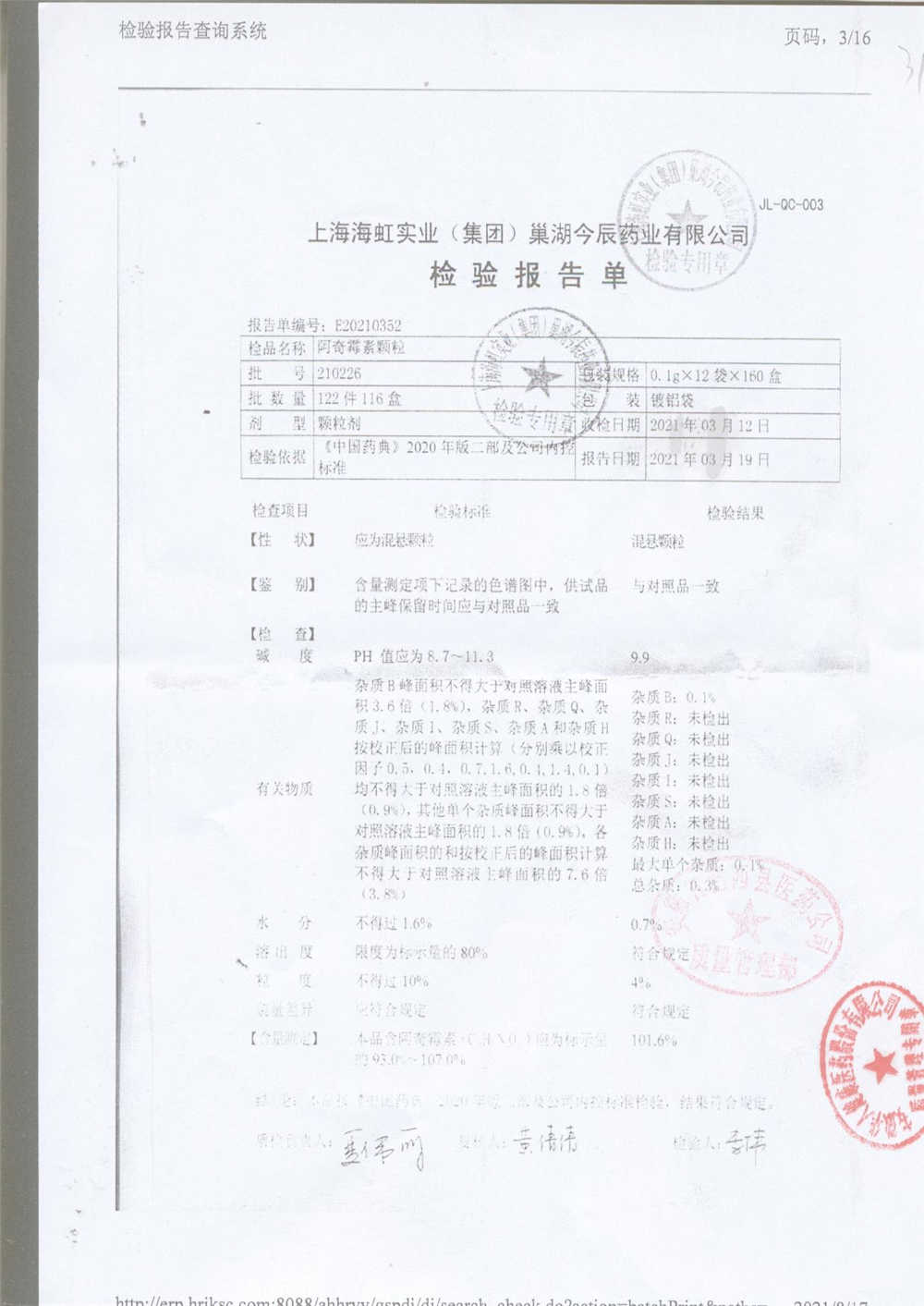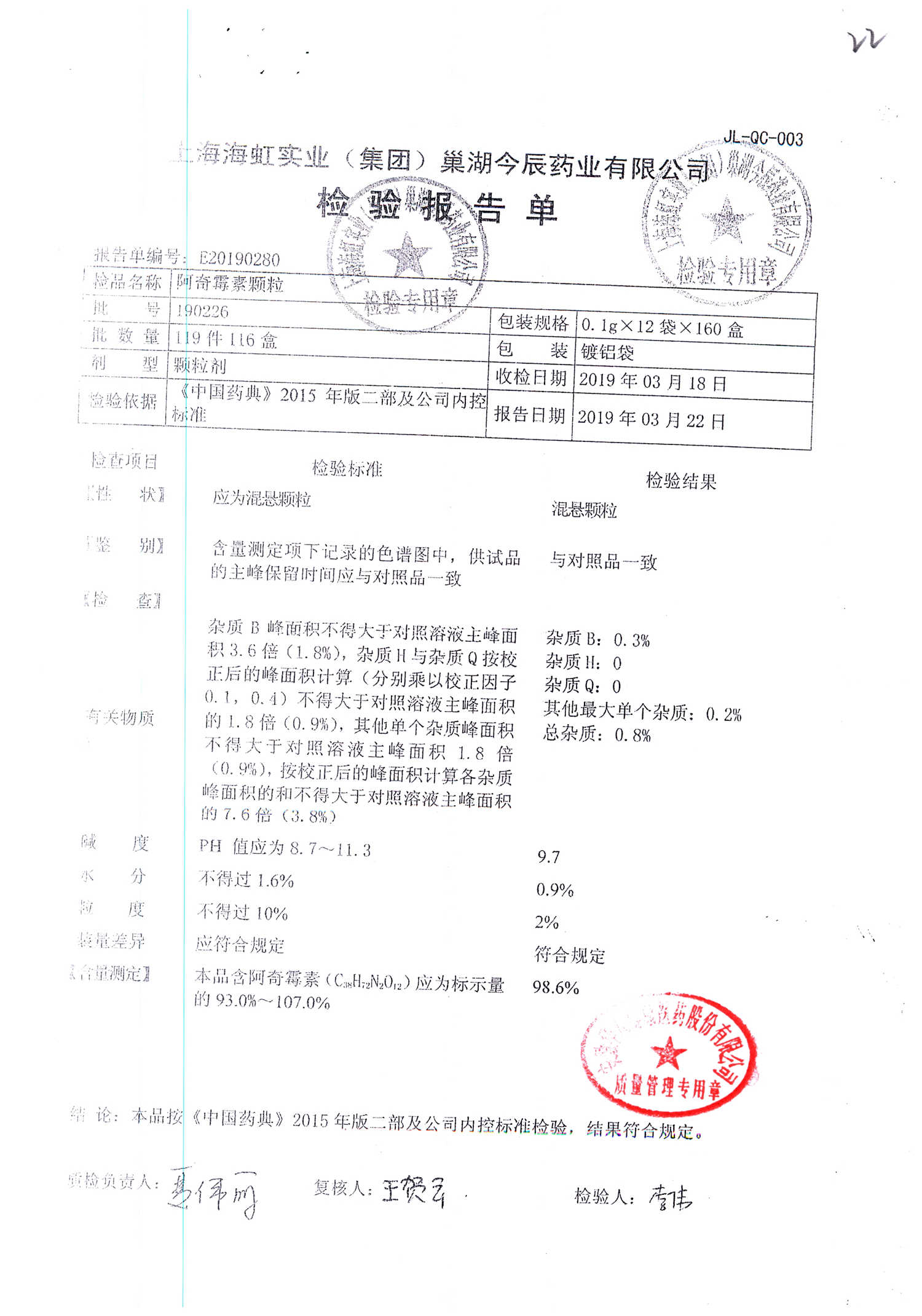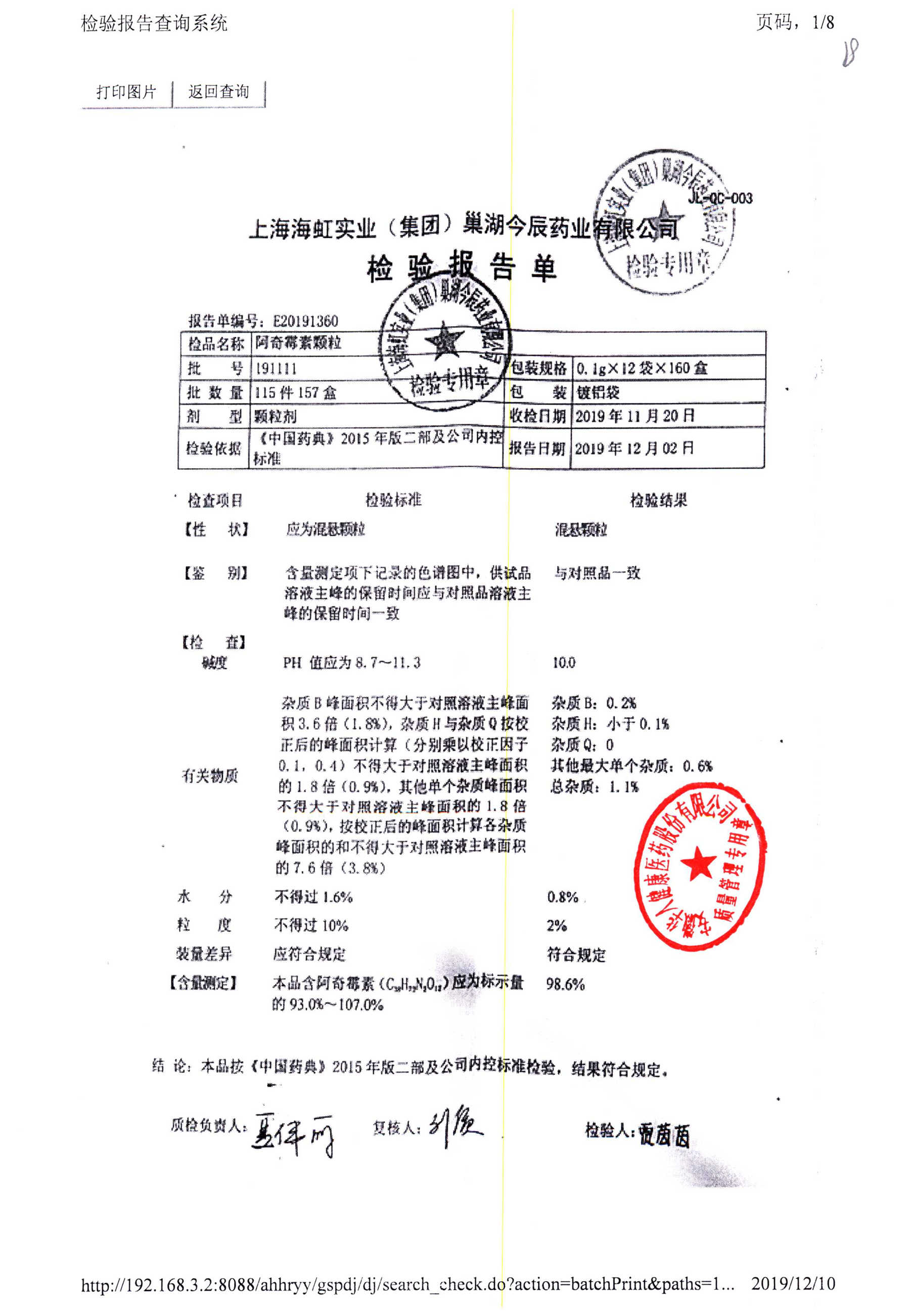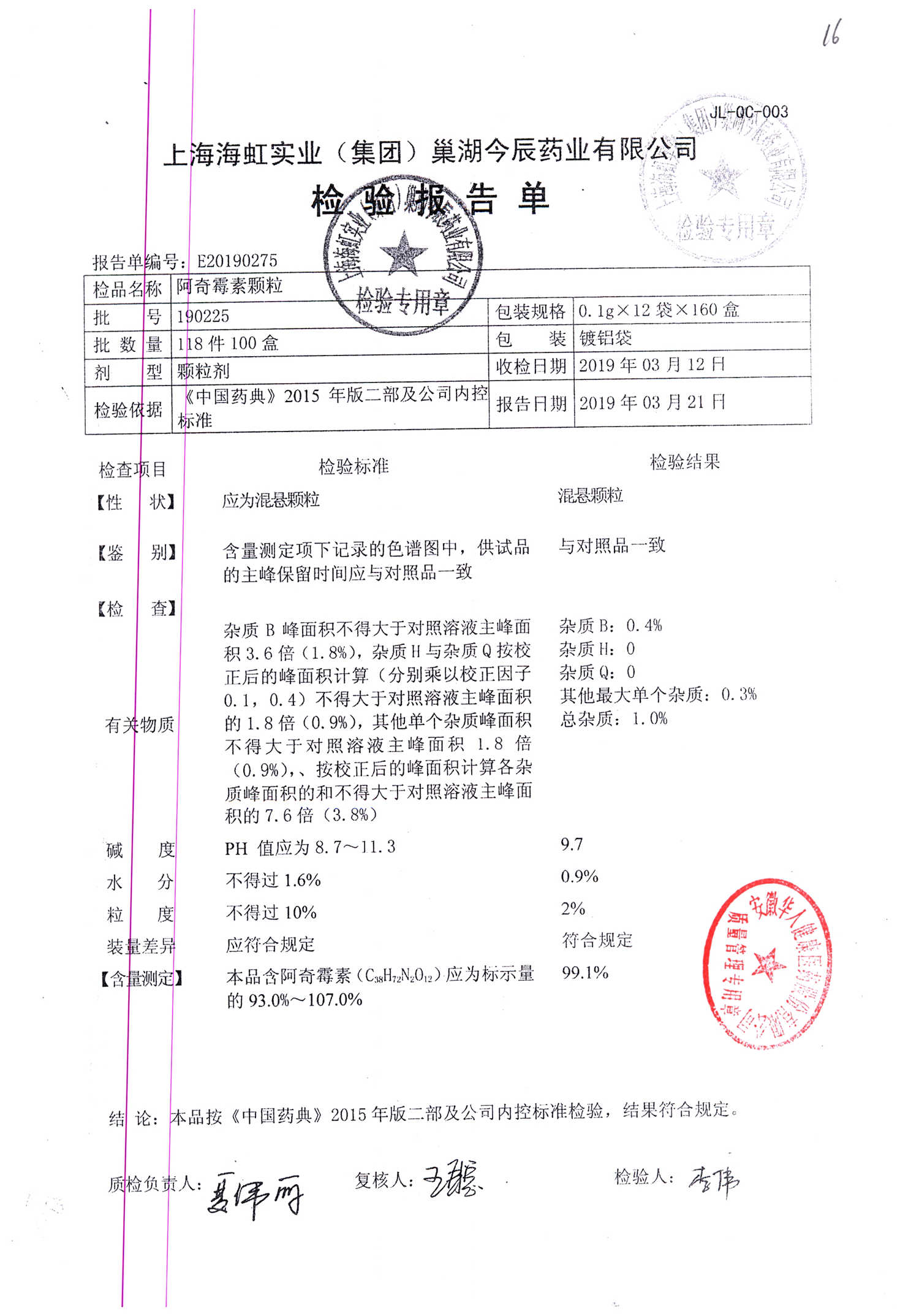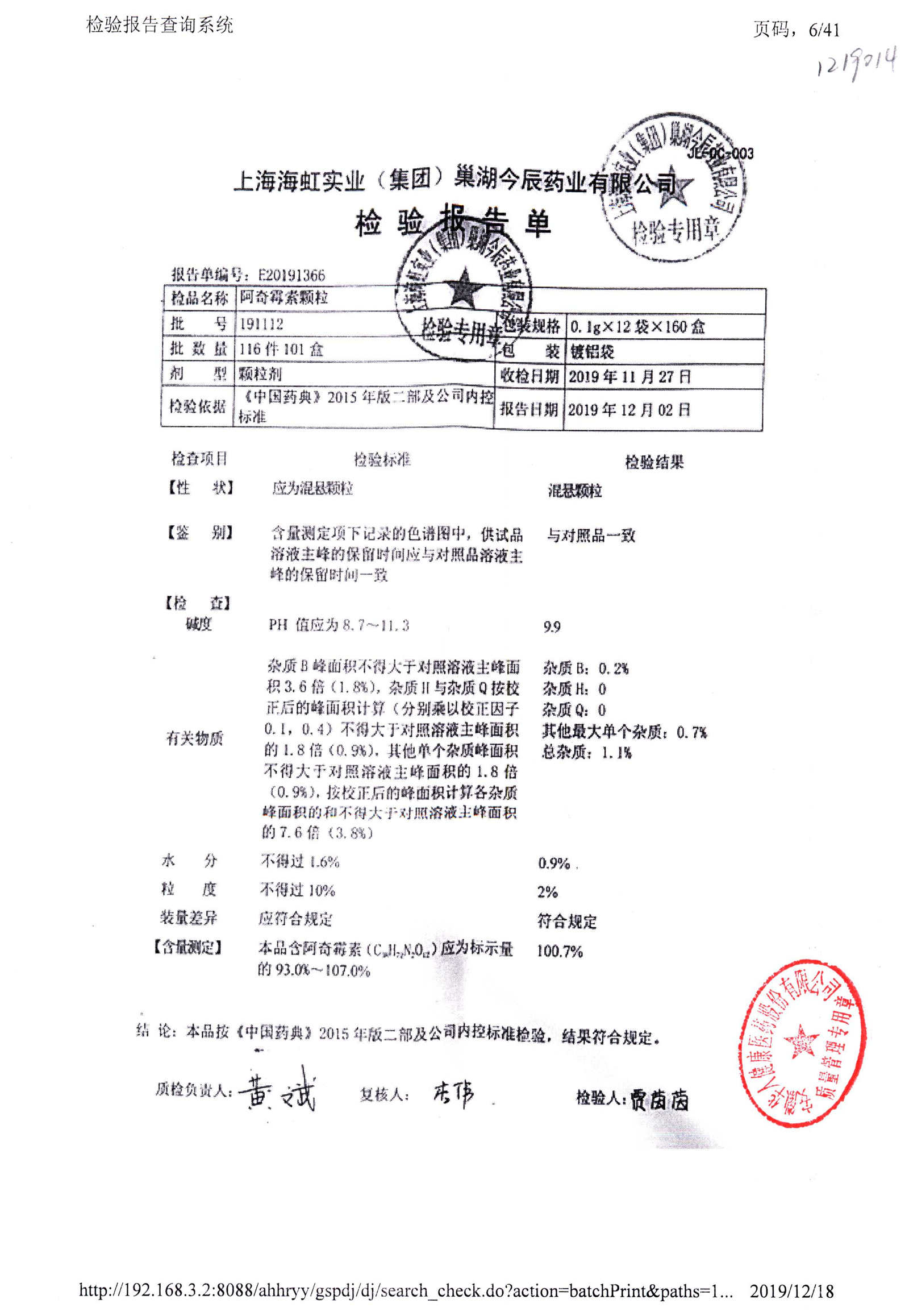 名稱 規(guī)格 批號 藥檢報告