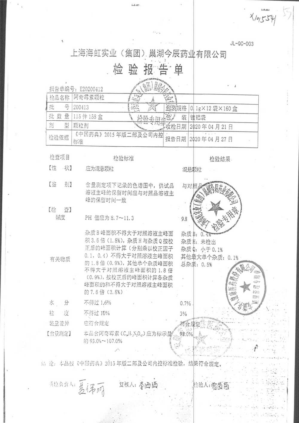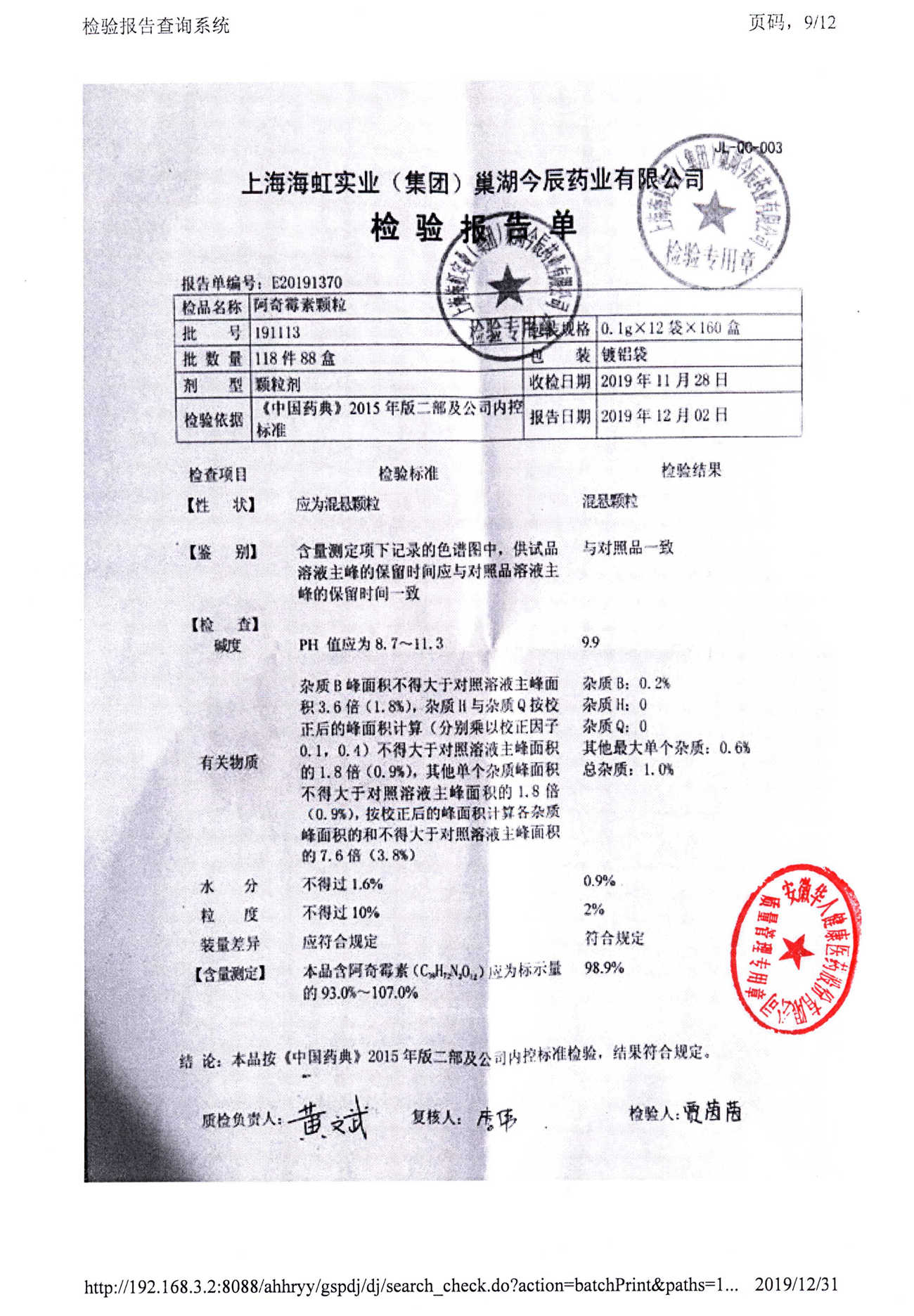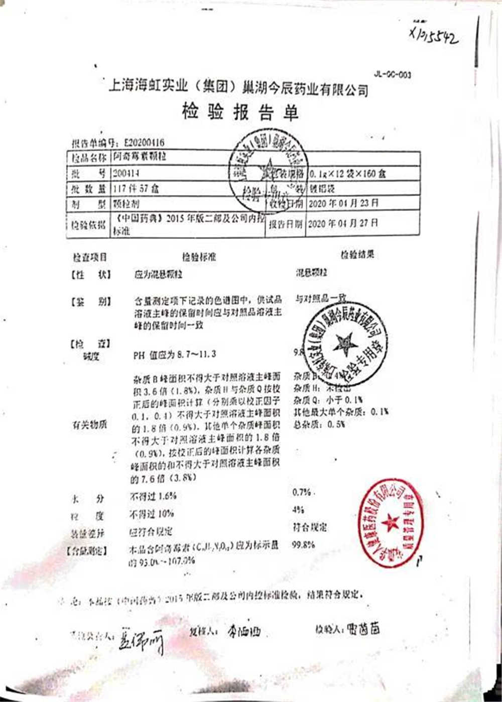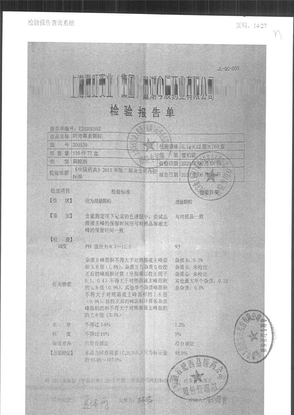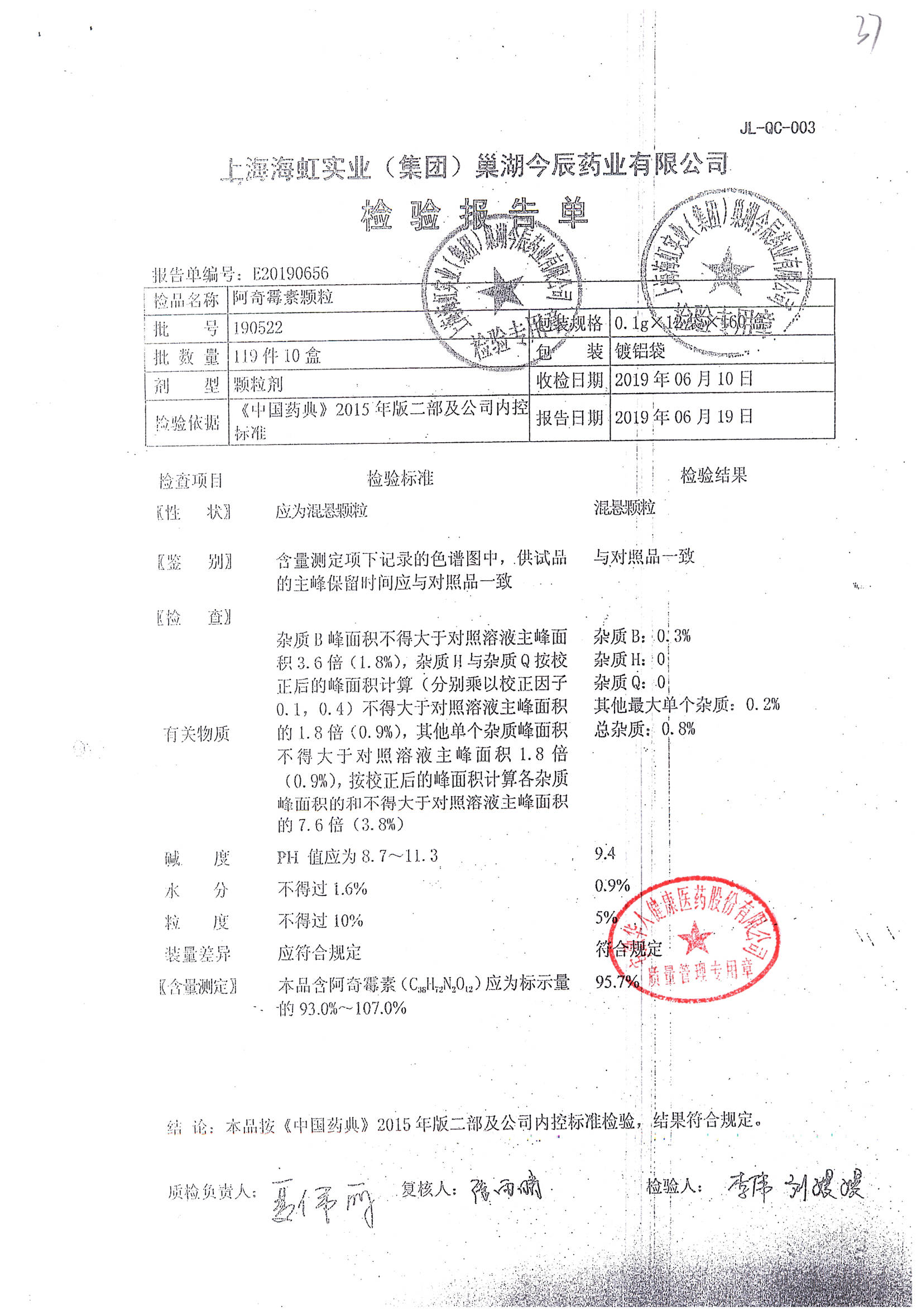 名稱 規(guī)格 批號 藥檢報告