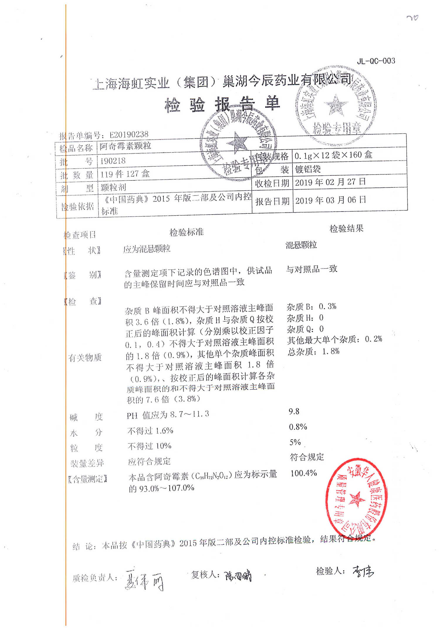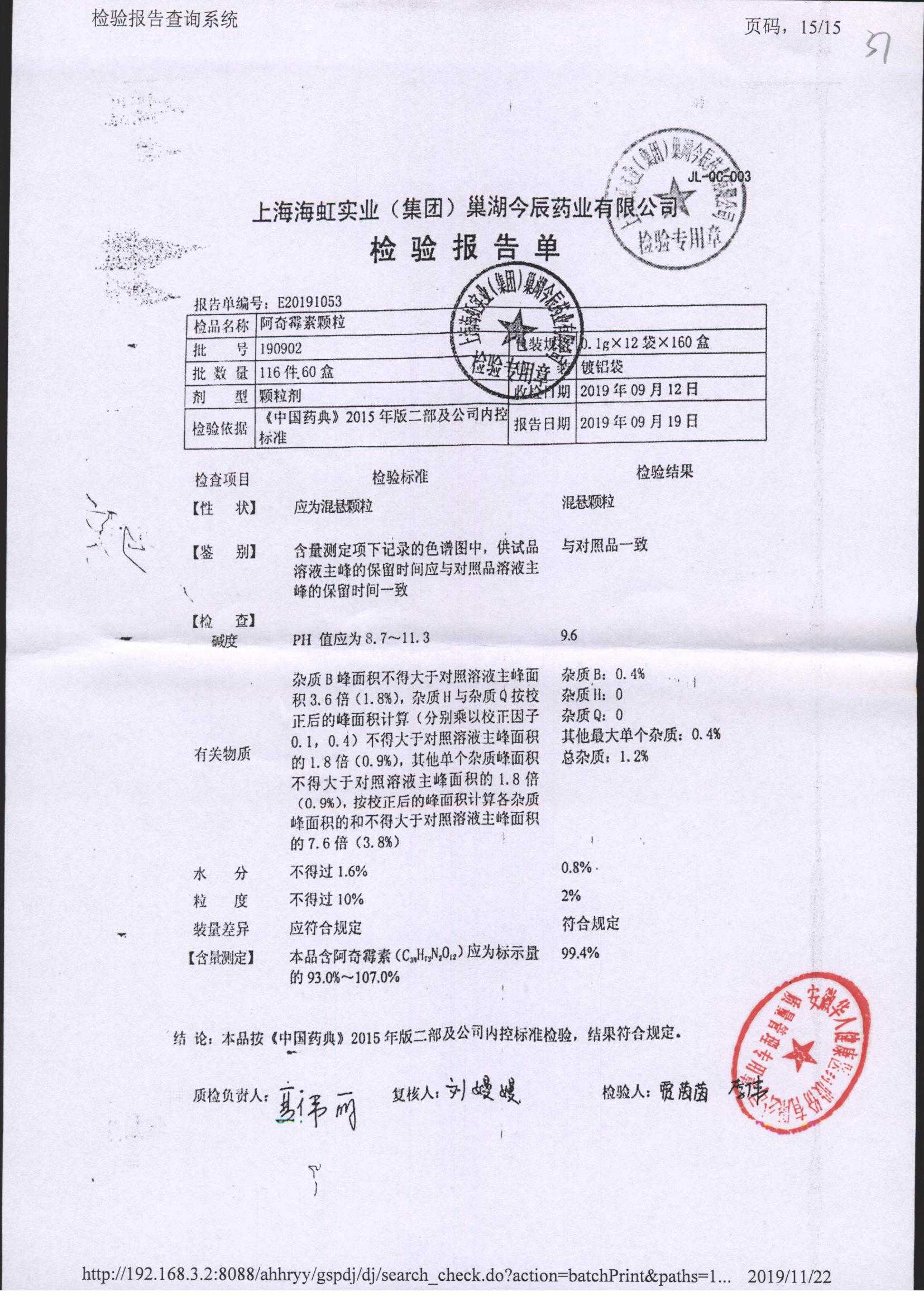 阿奇霉素顆粒 0.1g-12袋 191113 查看詳情