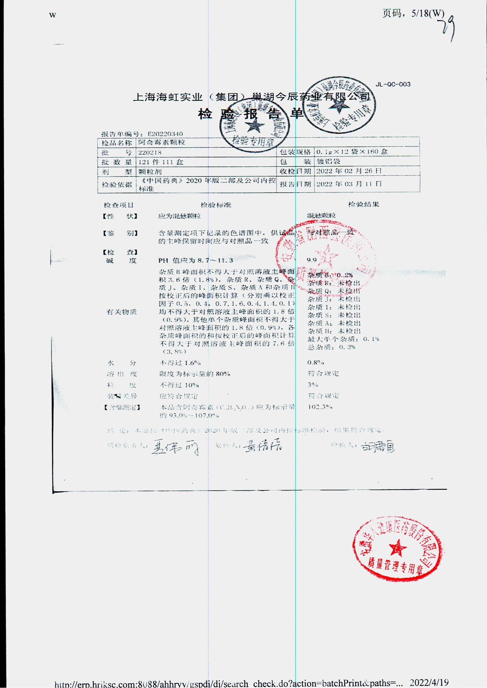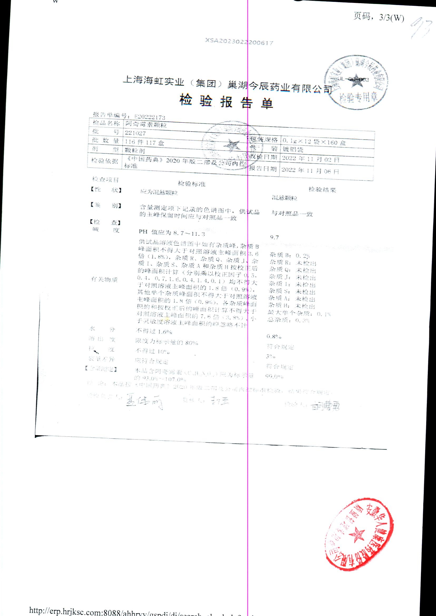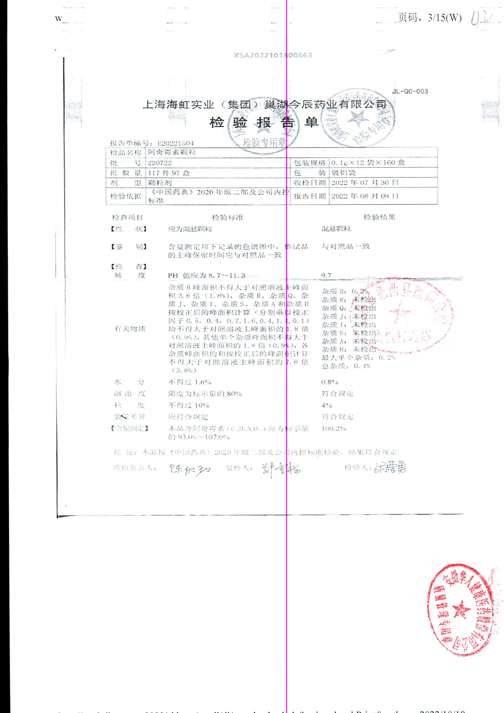 阿奇霉素顆粒 0.1g-12袋 220722 查看詳情