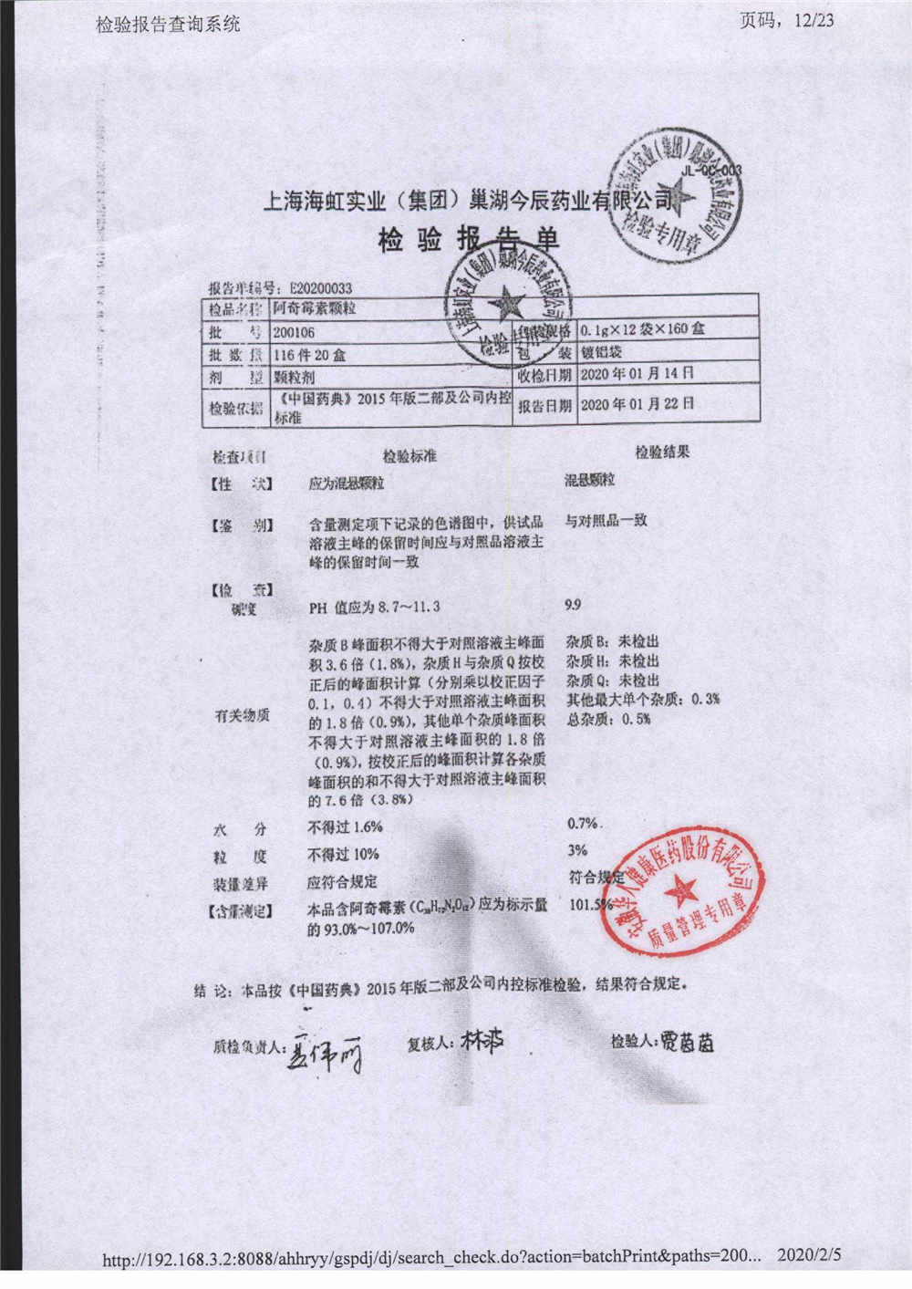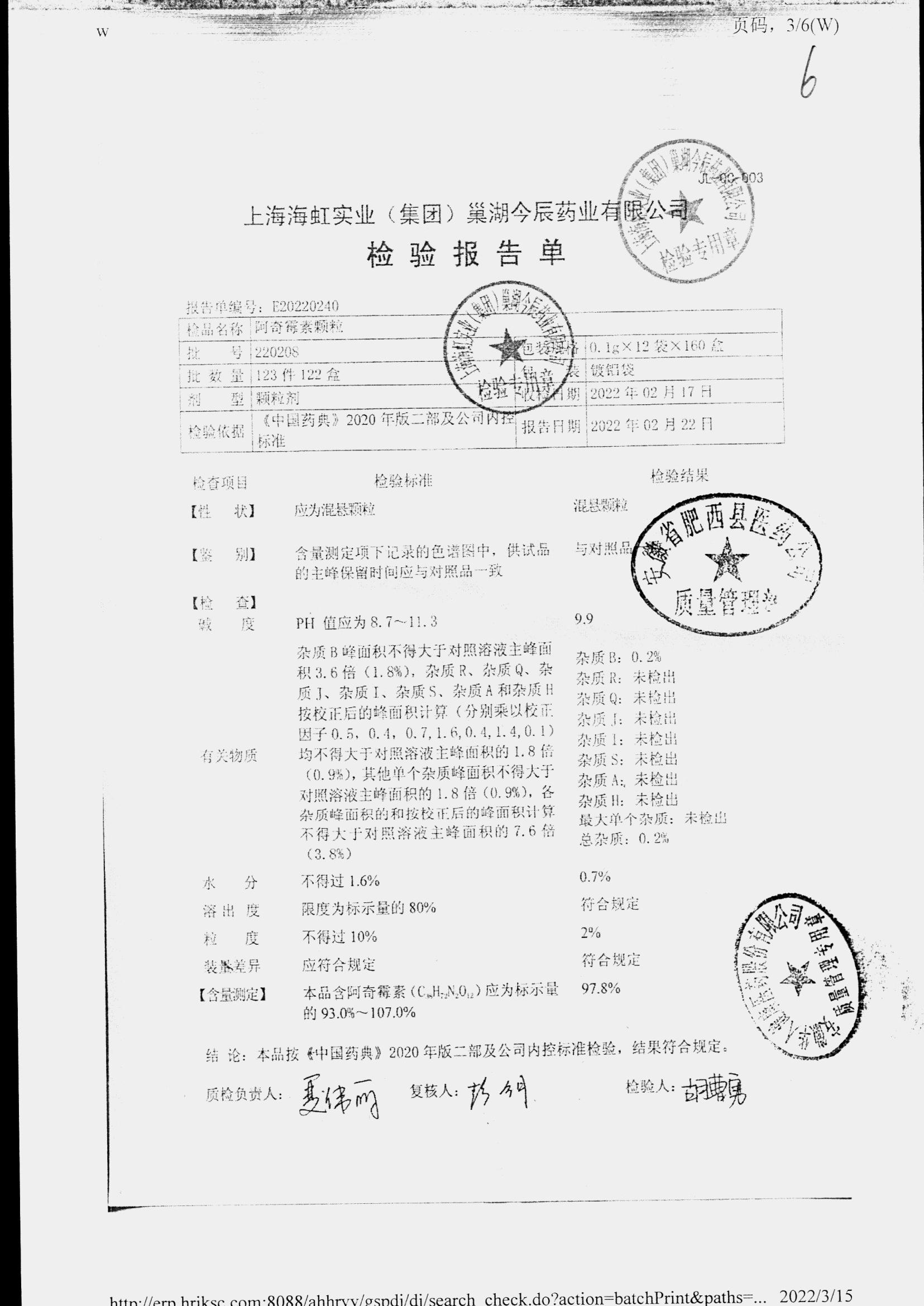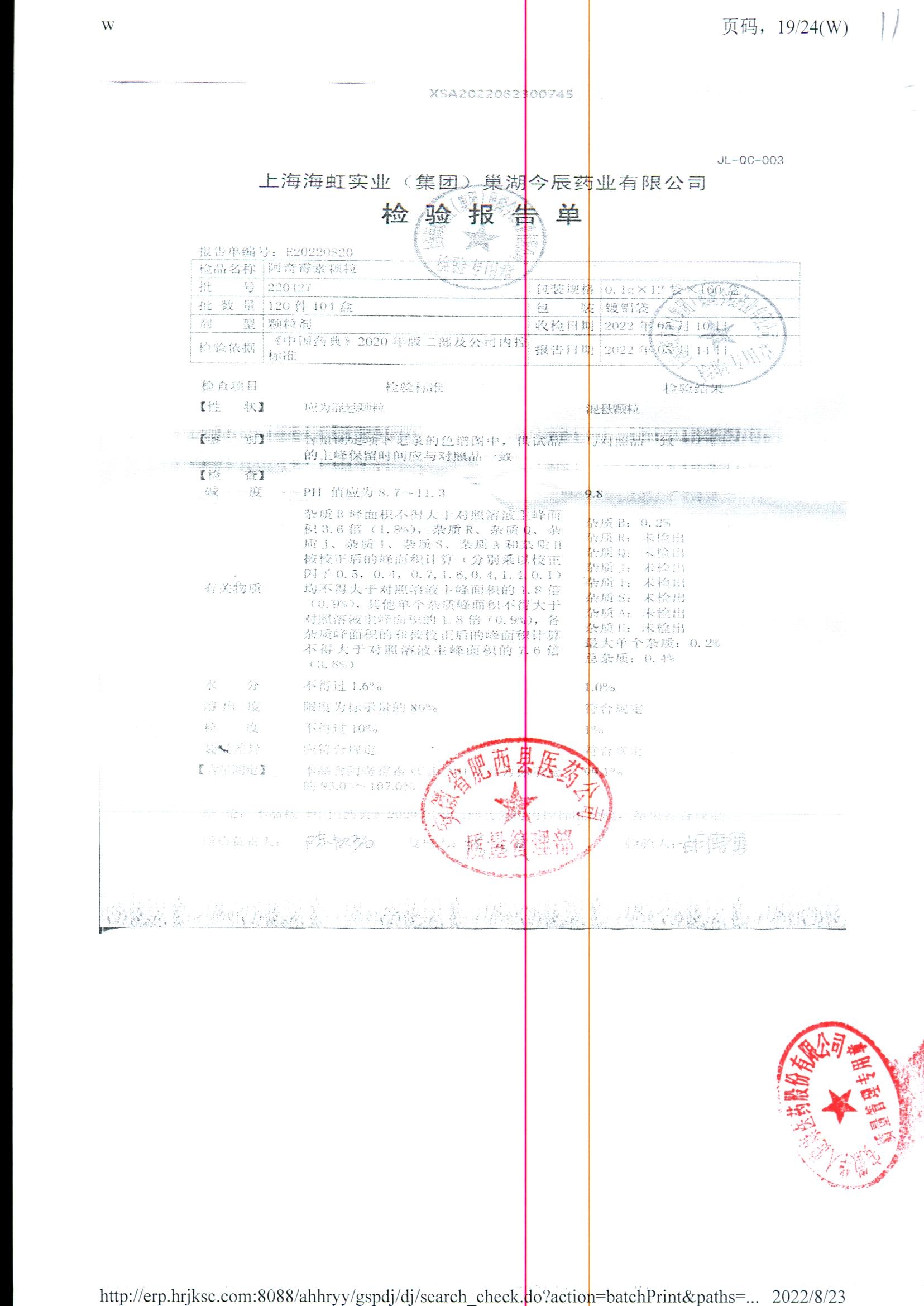 阿奇霉素顆粒 0.1g-12袋 220722 查看詳情
