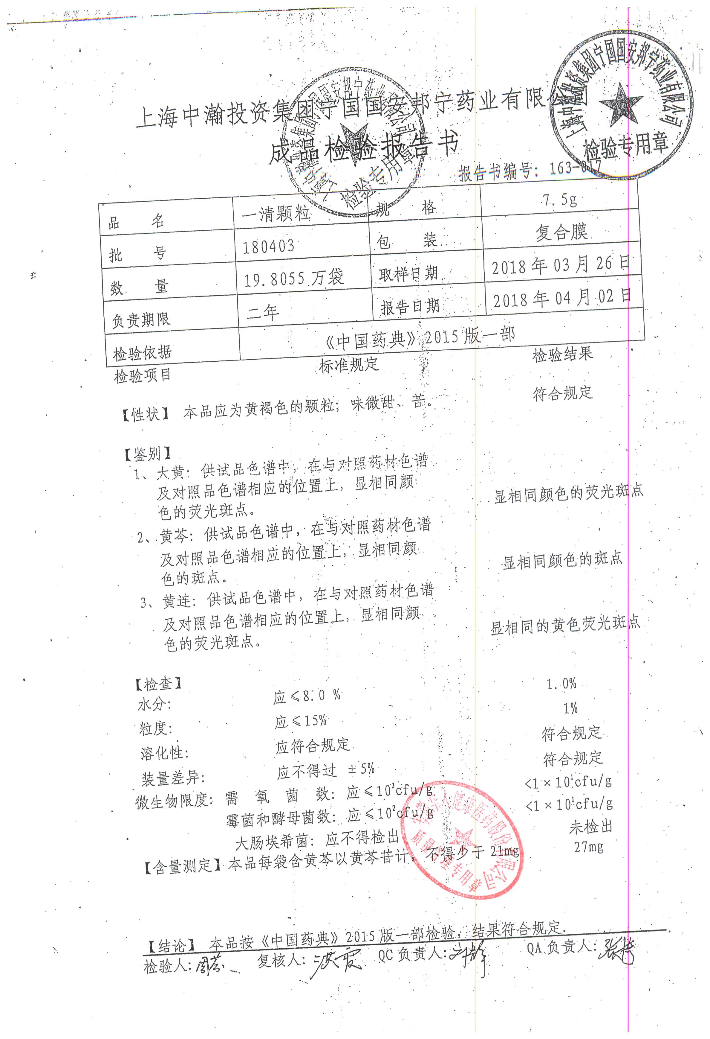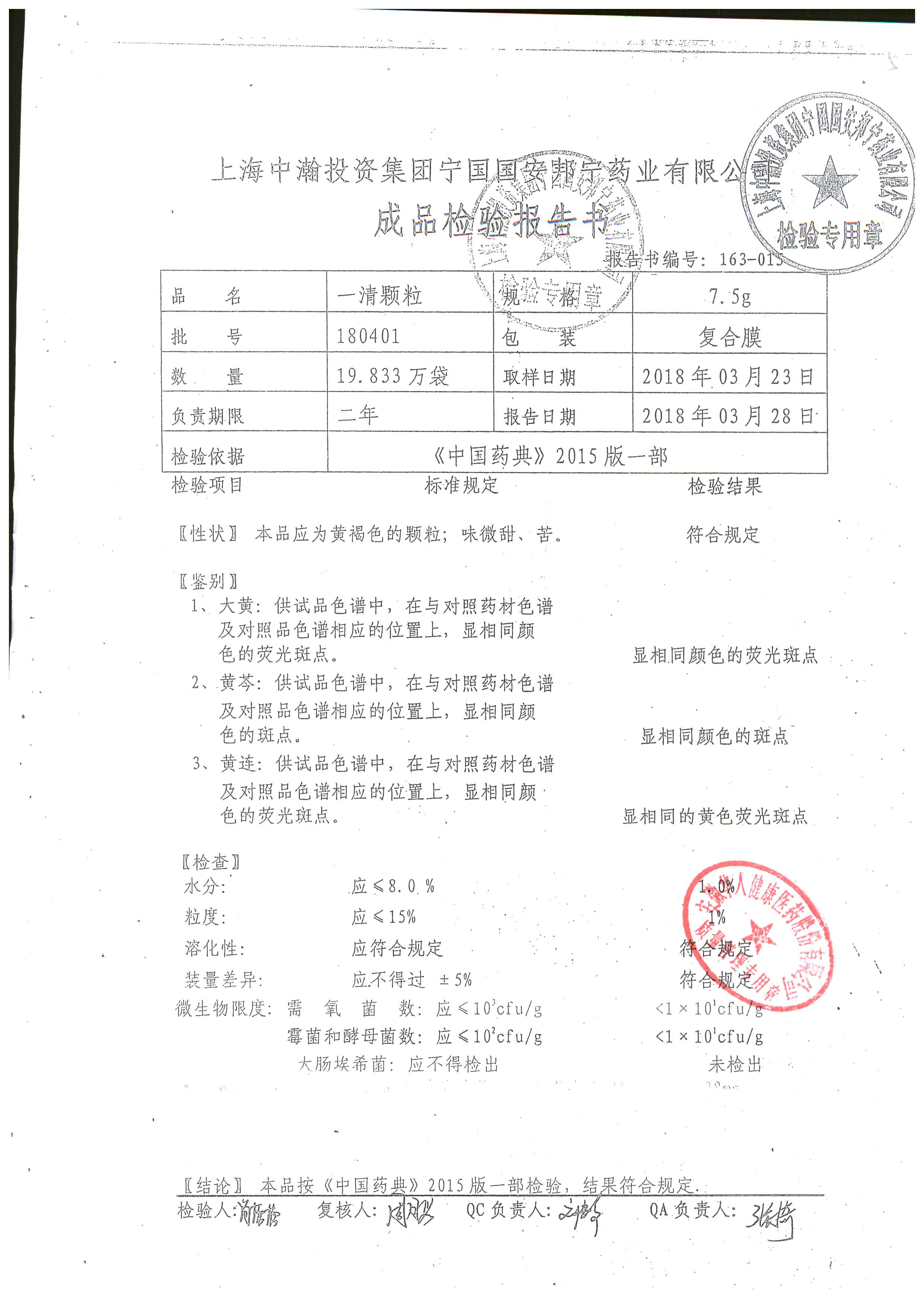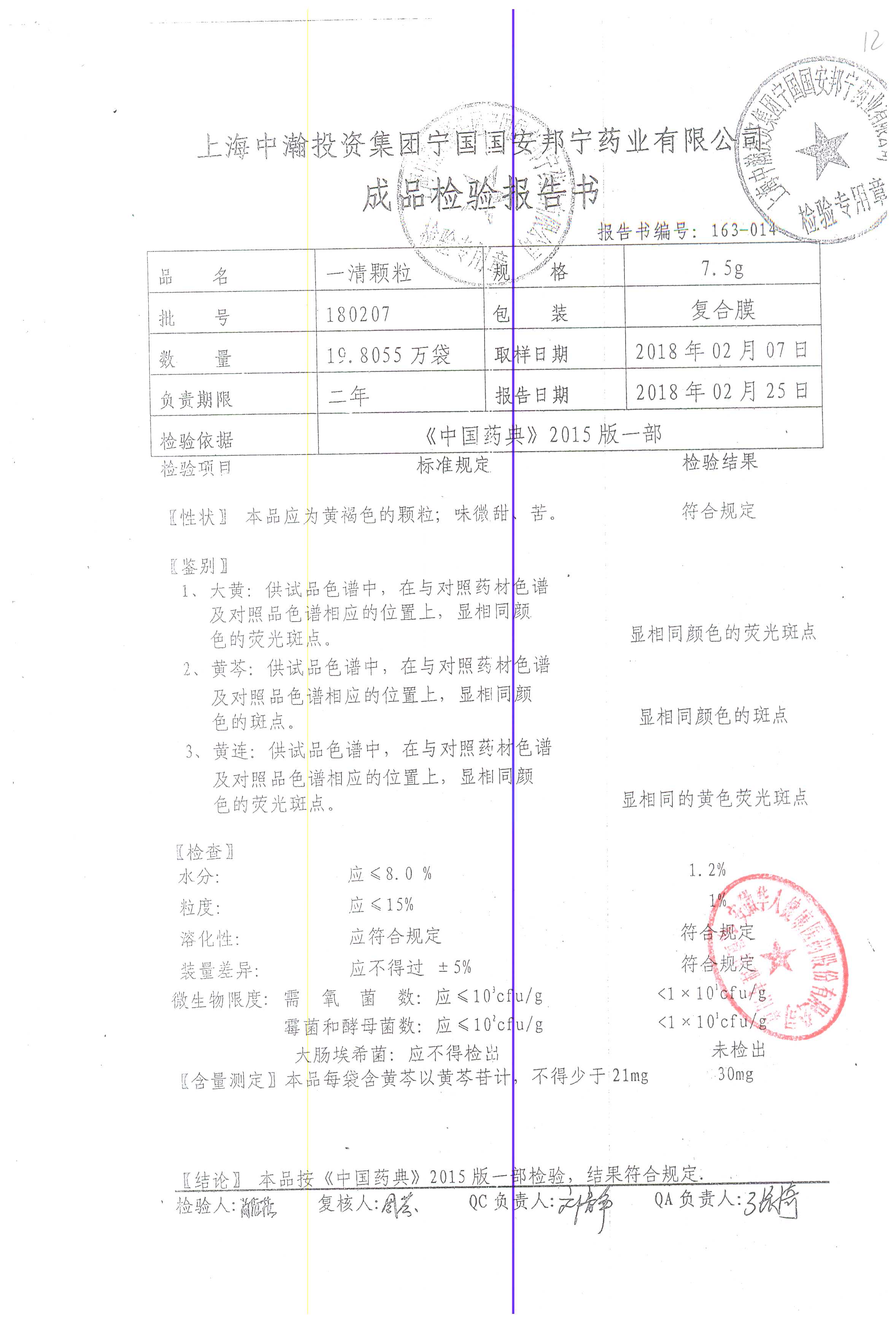 名稱 | 規(guī)格 | 批號(hào) | 藥檢報(bào)告 |