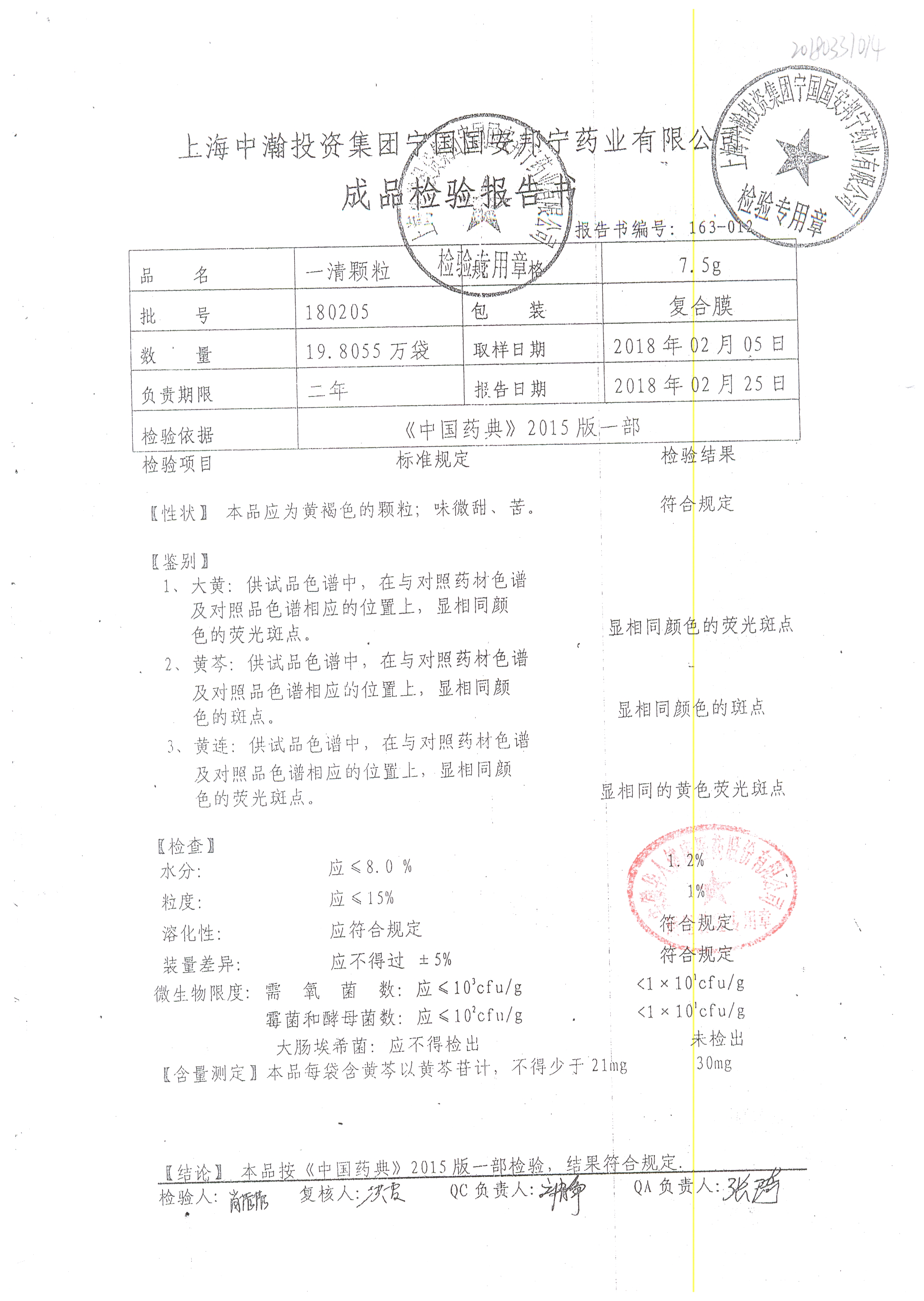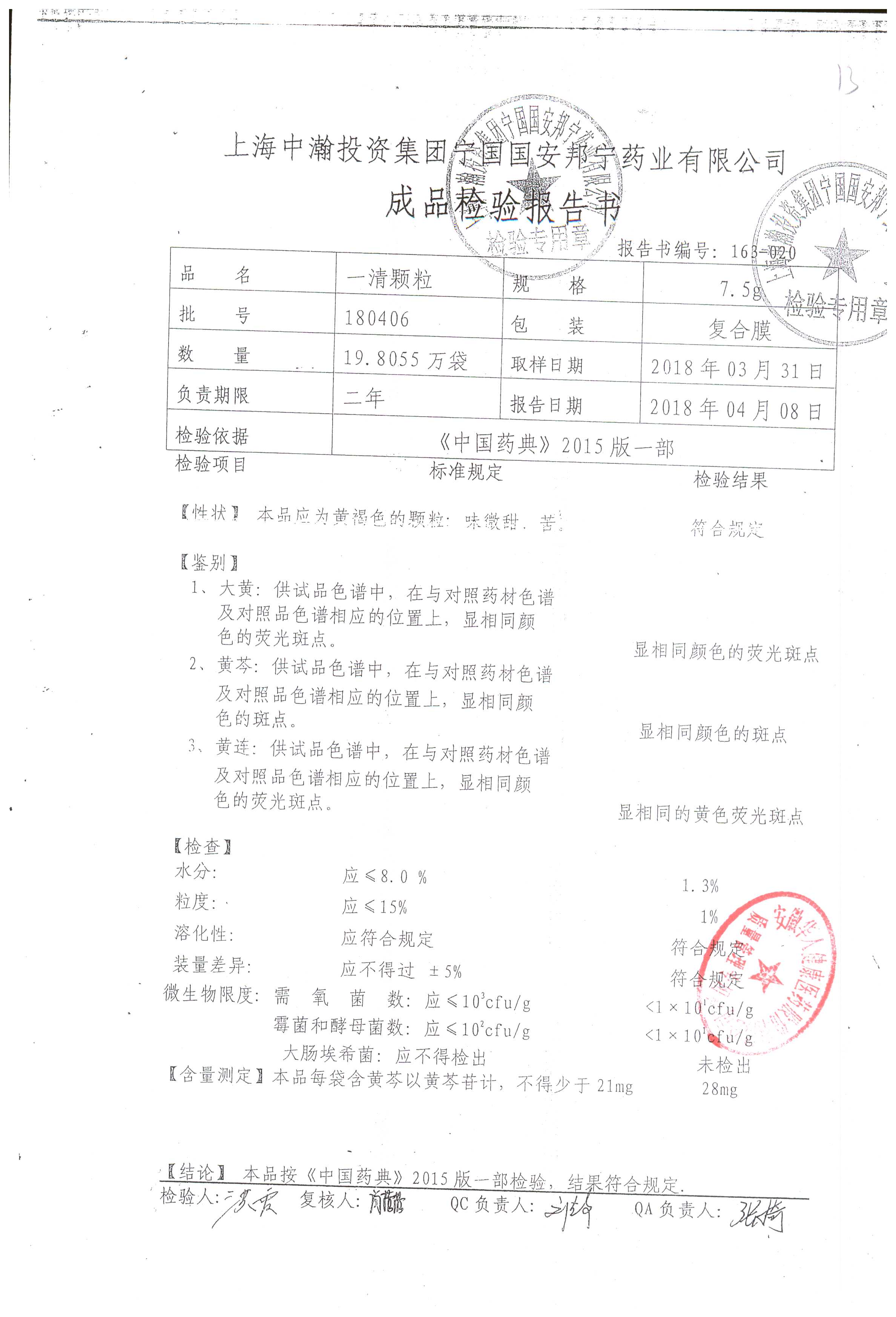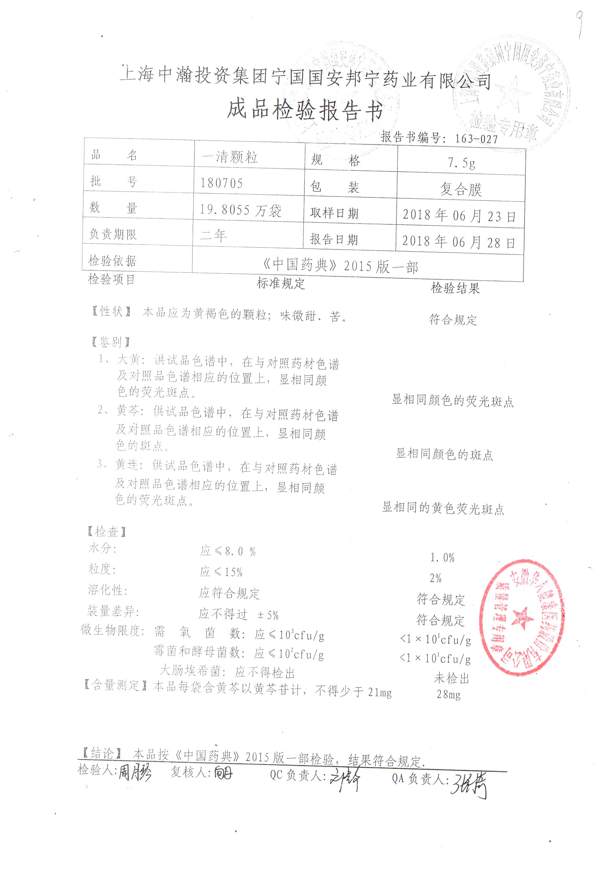 名稱 | 規(guī)格 | 批號(hào) | 藥檢報(bào)告 |