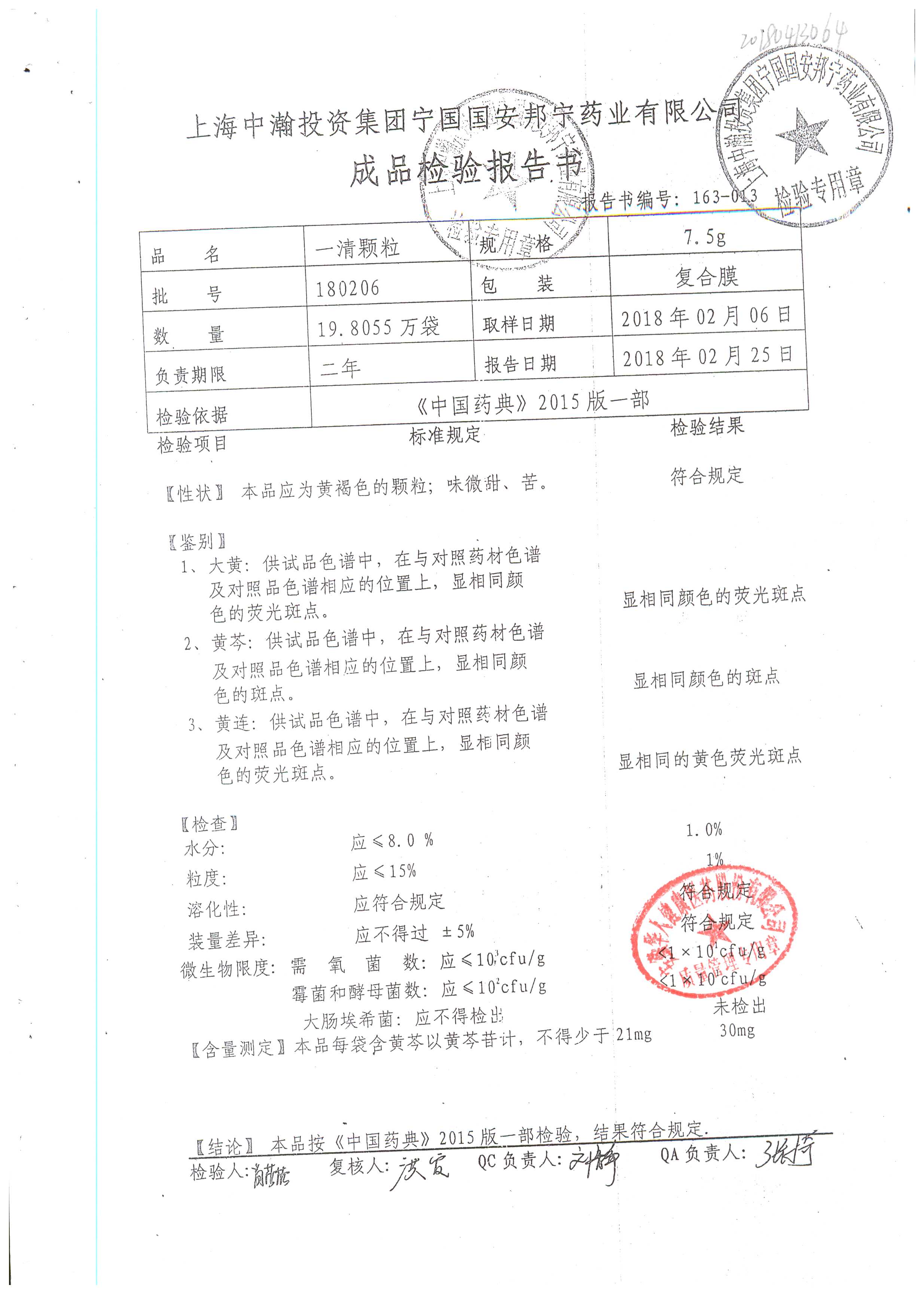 一清顆粒 | 7.5g | 180206 | 查看詳情 |