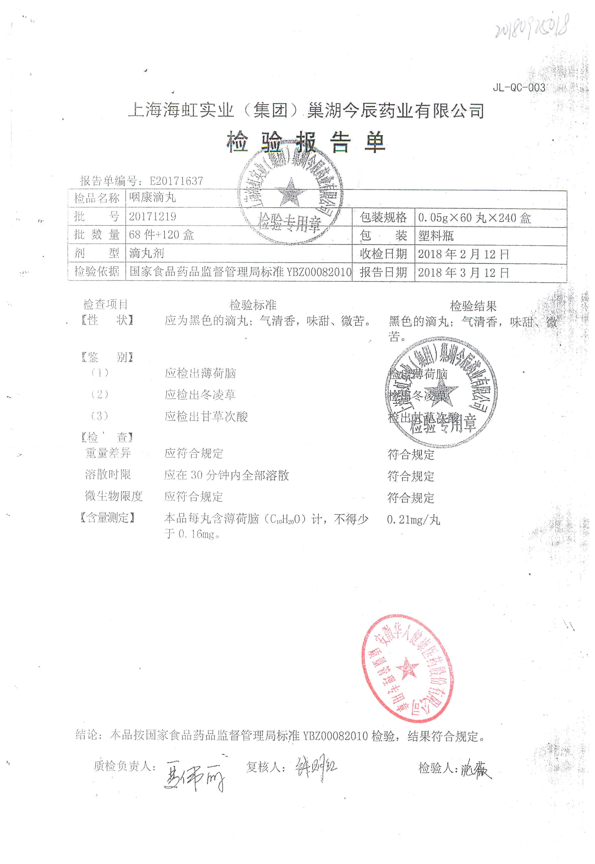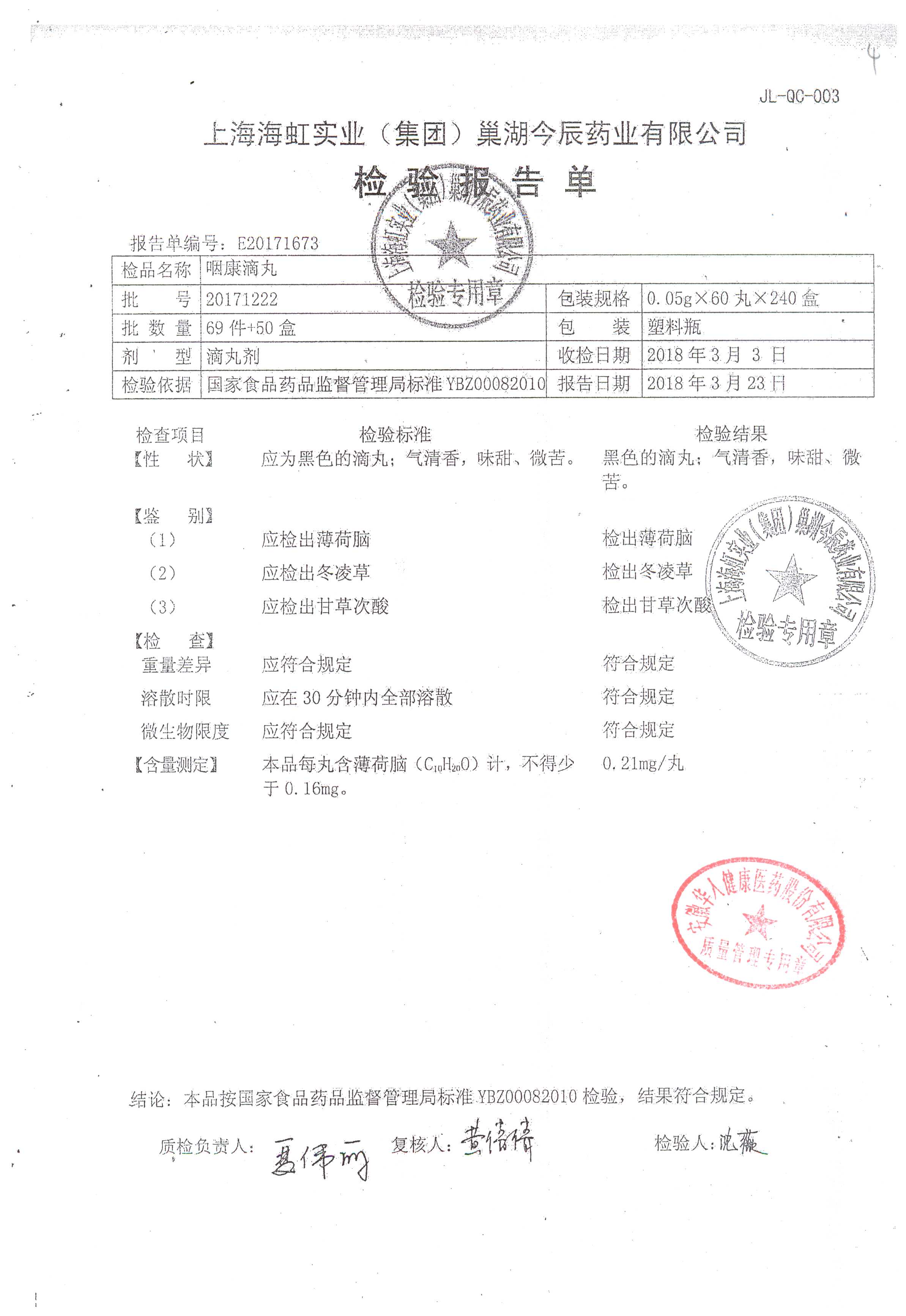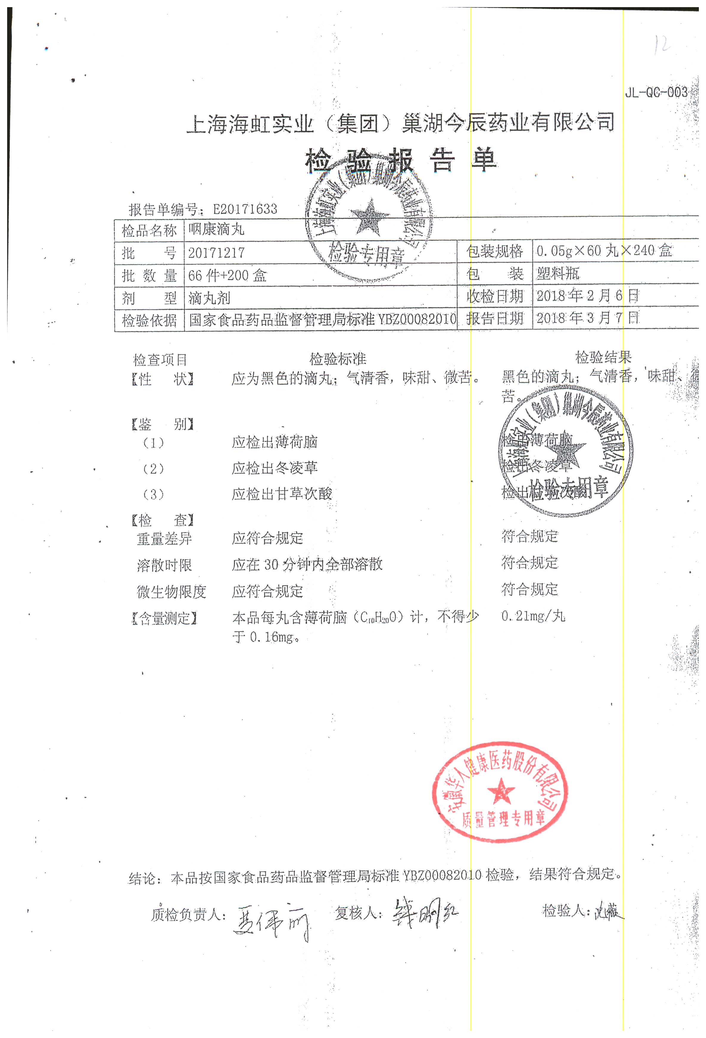 咽康滴丸 | 0.05g*40丸 | 20171217 | 查看詳情 |