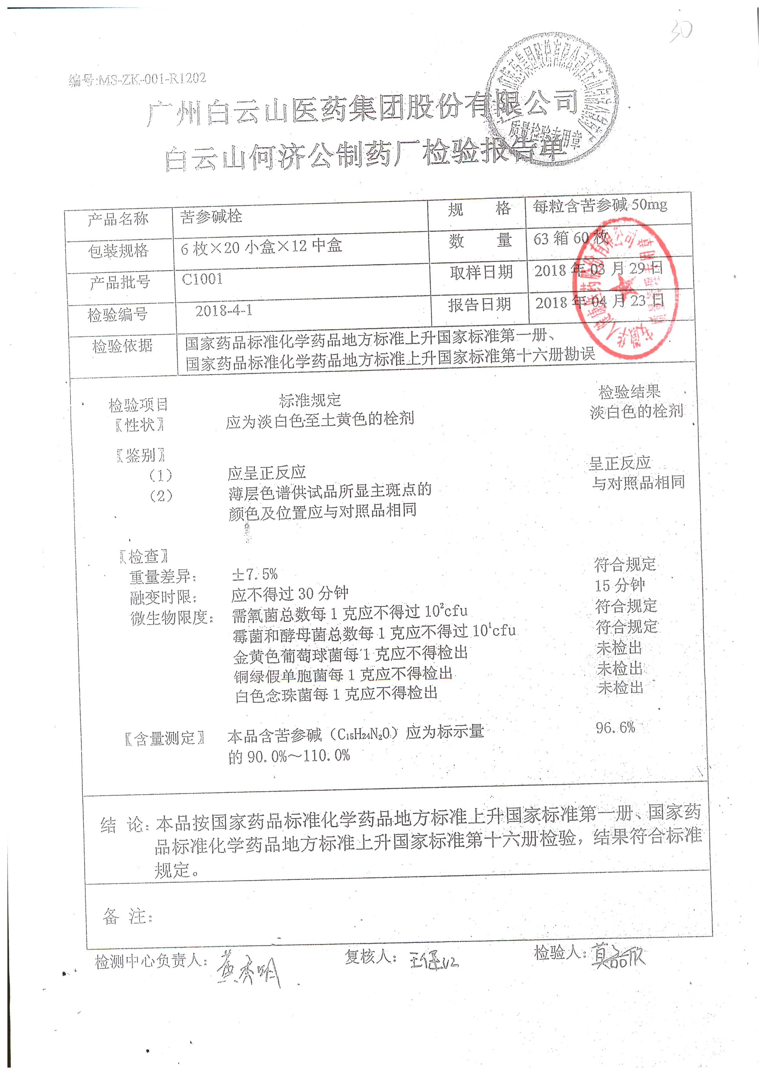 名稱 | 規(guī)格 | 批號(hào) | 藥檢報(bào)告 |