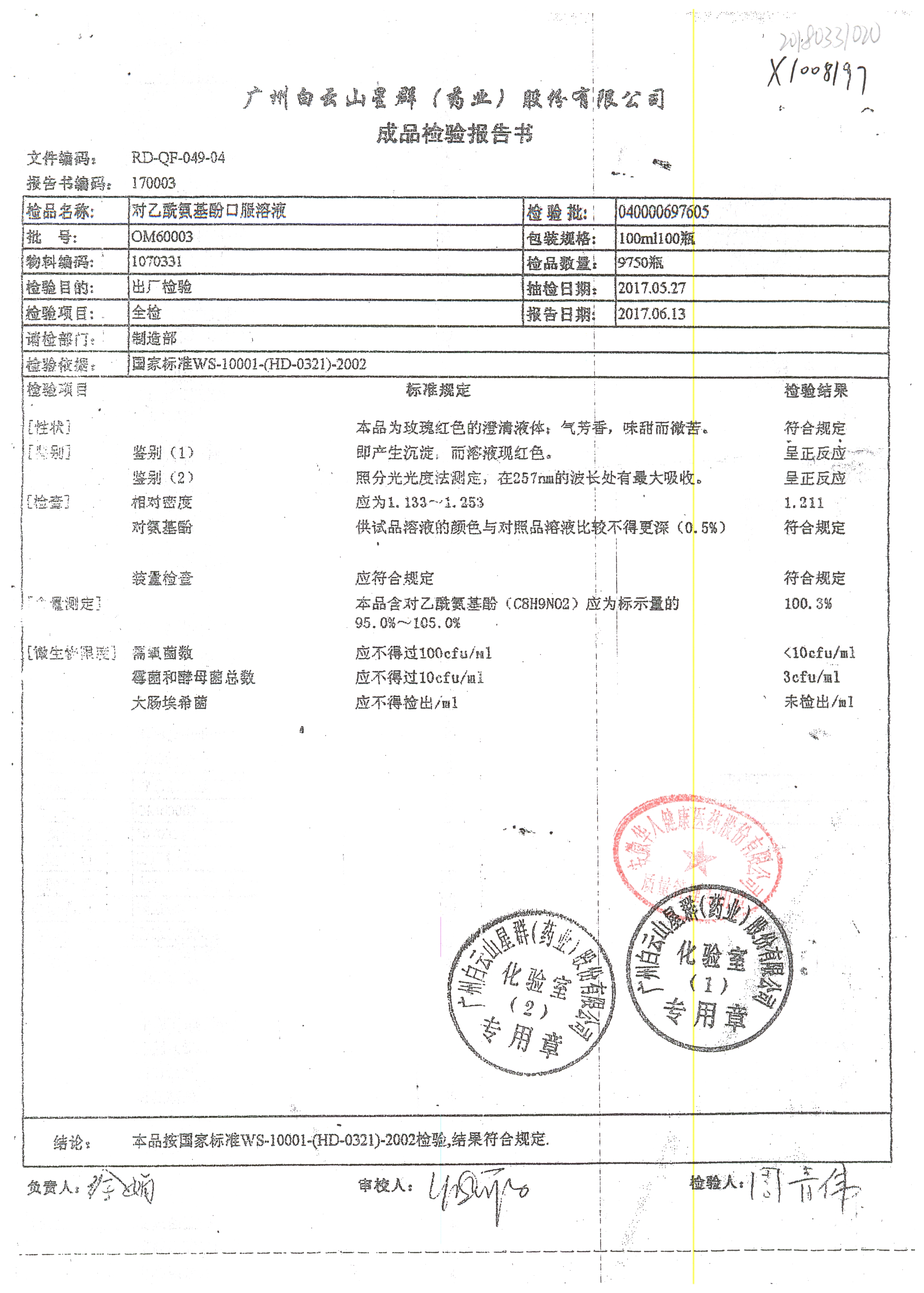 對(duì)乙醯氨基酚口服溶液 100ml OM60003 查看詳情