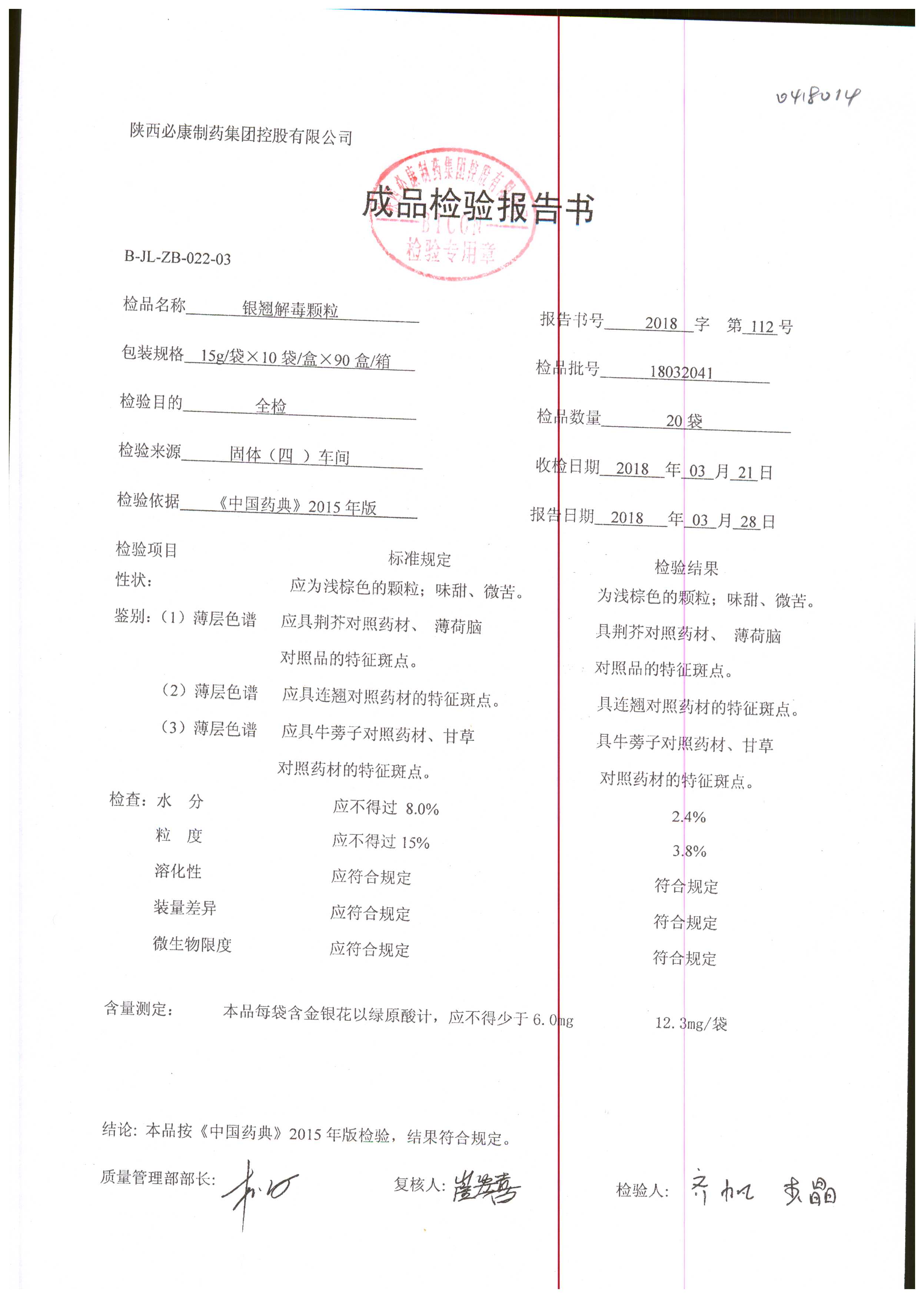 名稱 規(guī)格 批號(hào) 藥檢報(bào)告