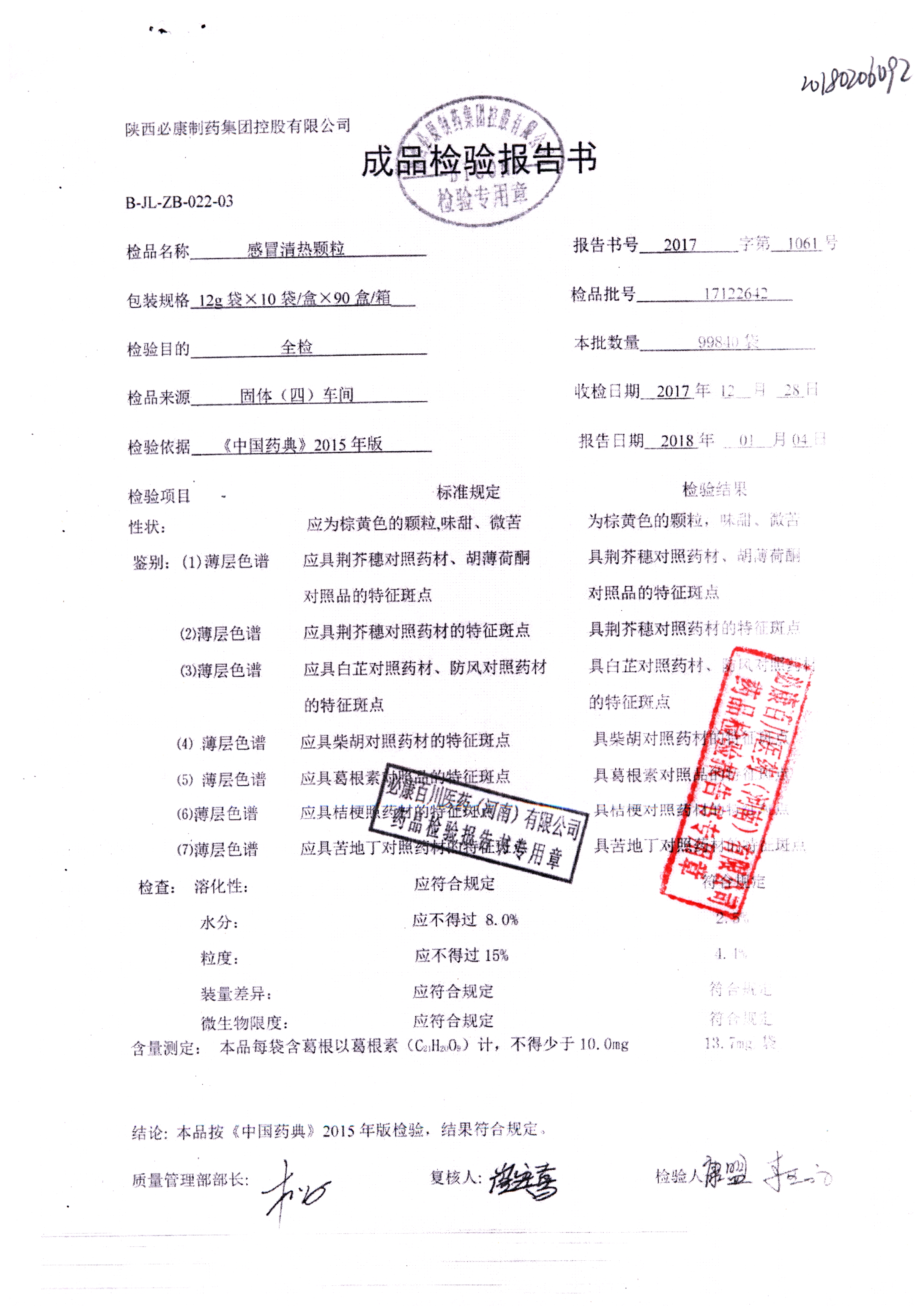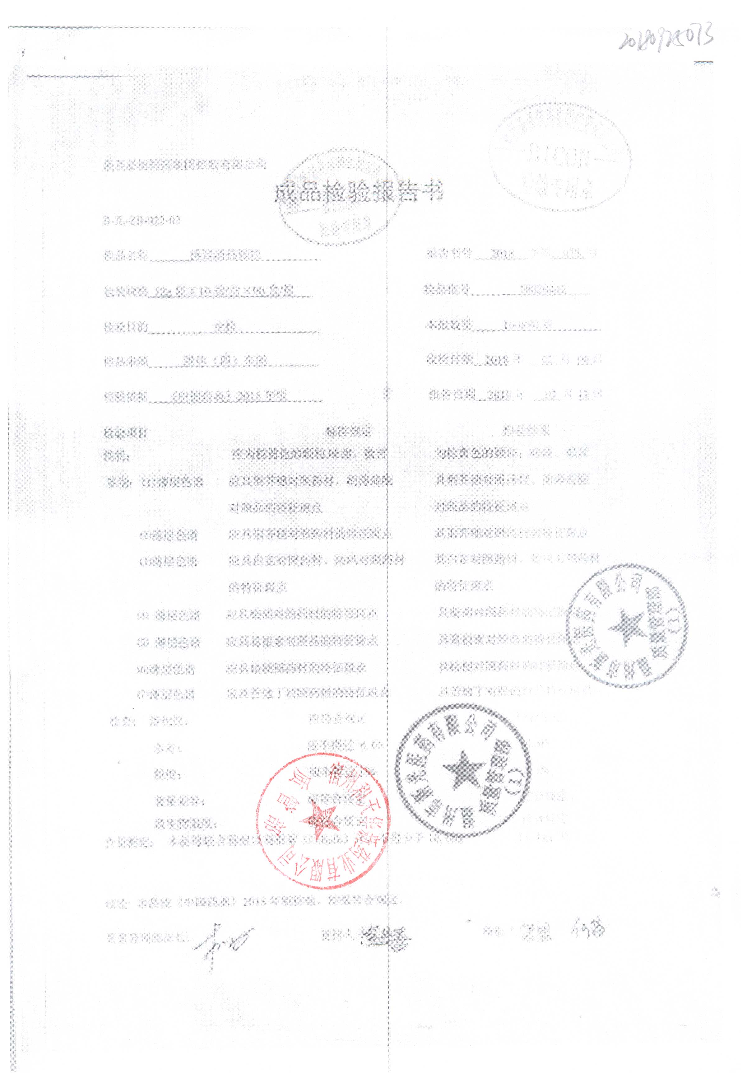 | 名稱 | 規(guī)格 | 批號 | 藥檢報告 |