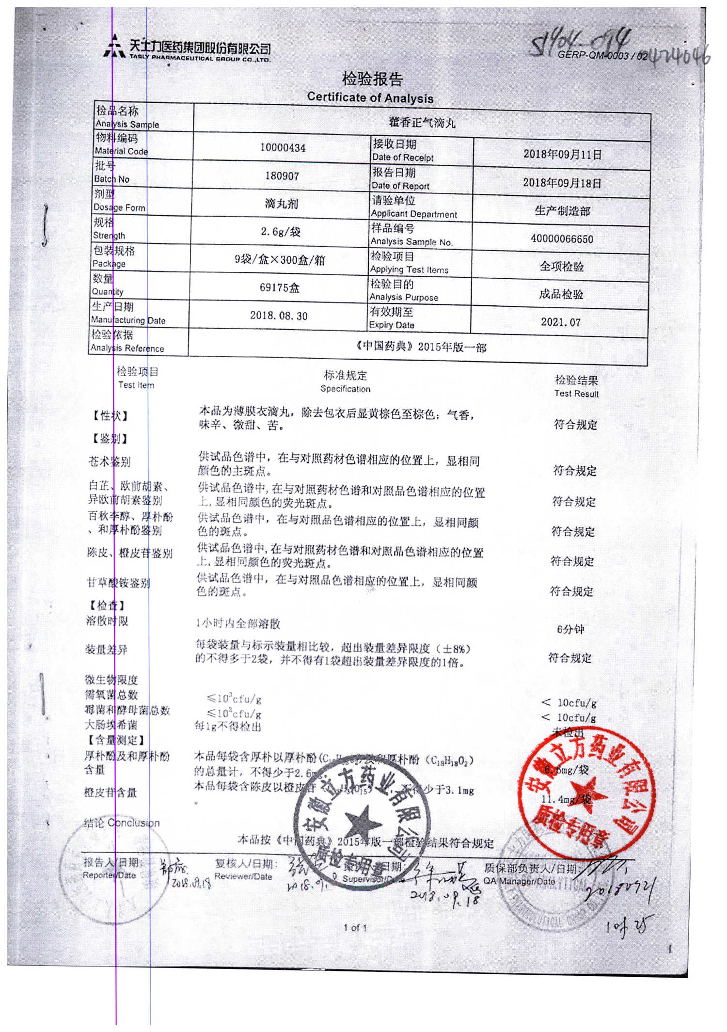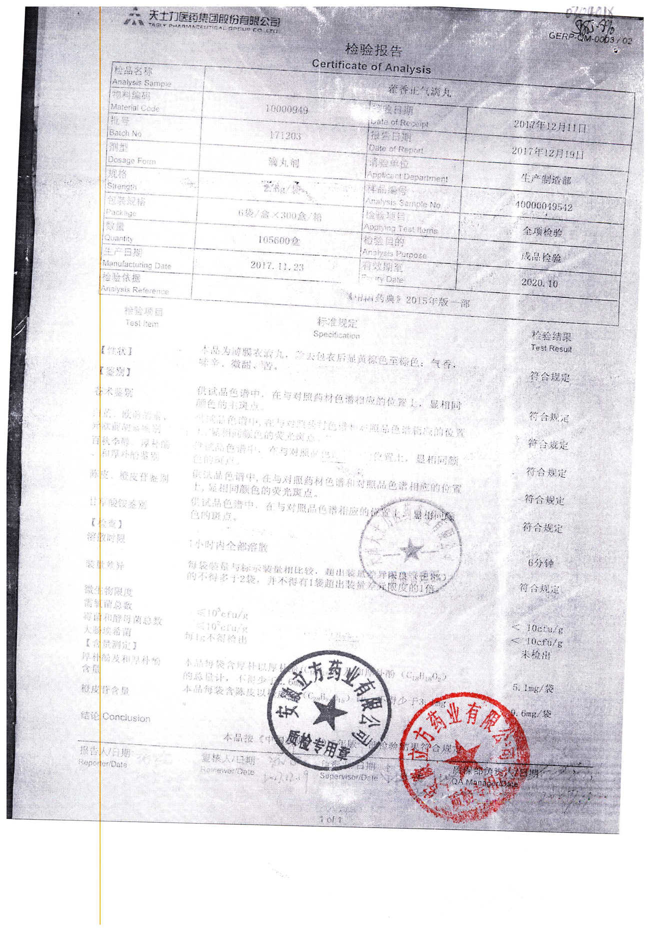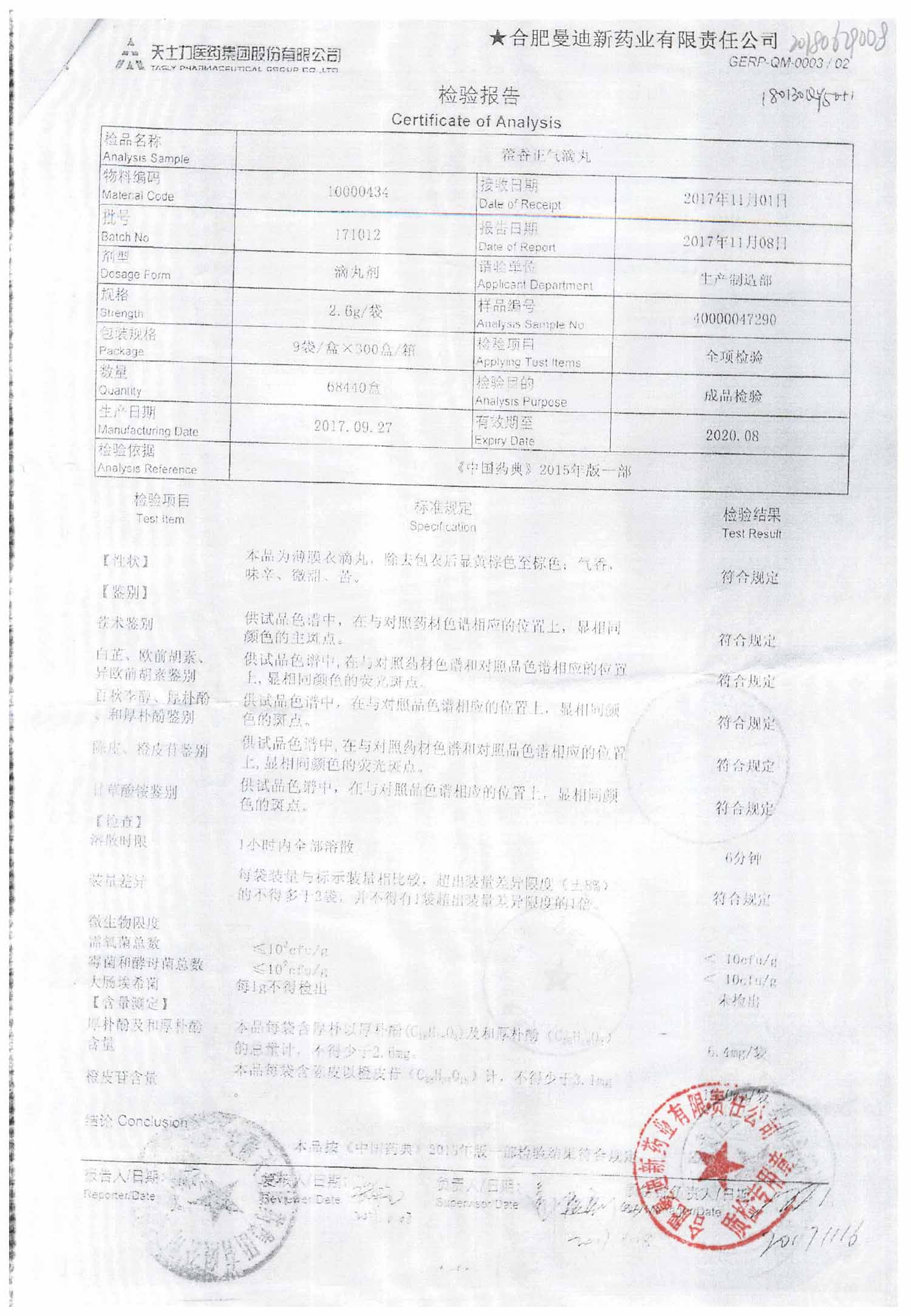 名稱 規(guī)格 批號(hào) 藥檢報(bào)告