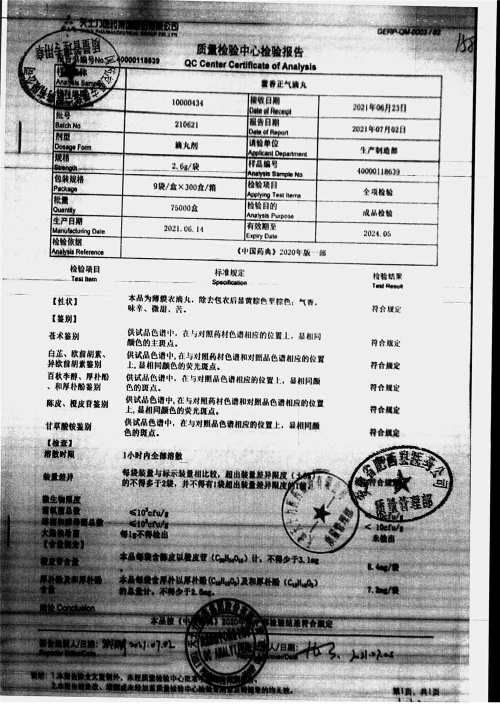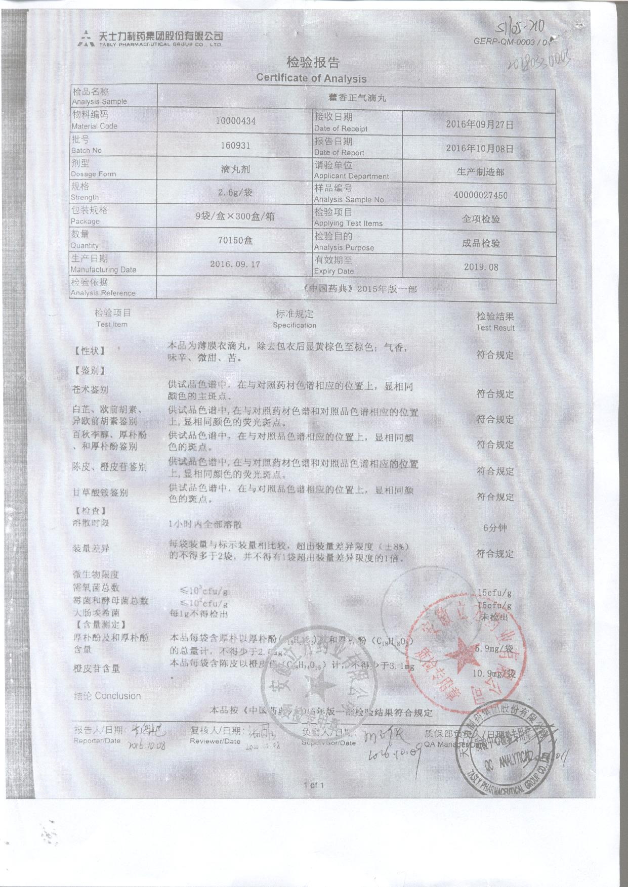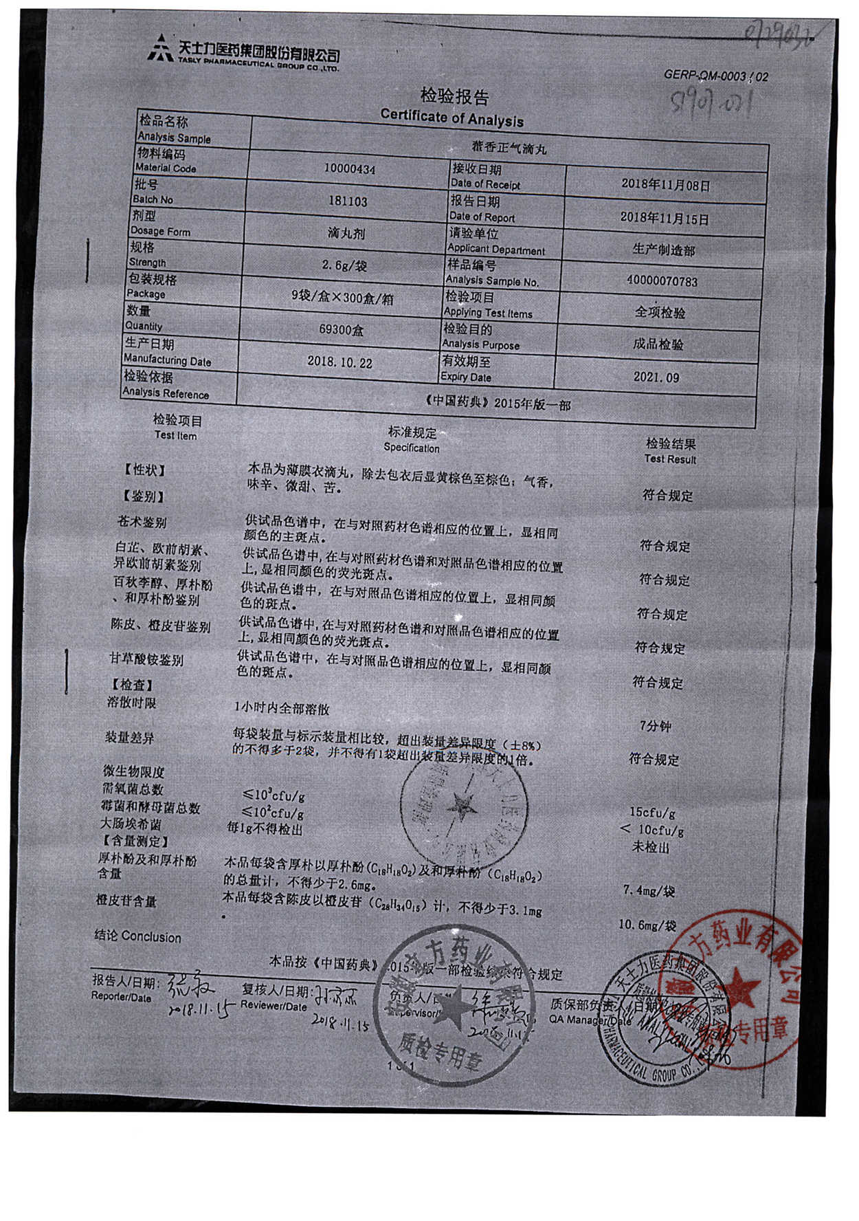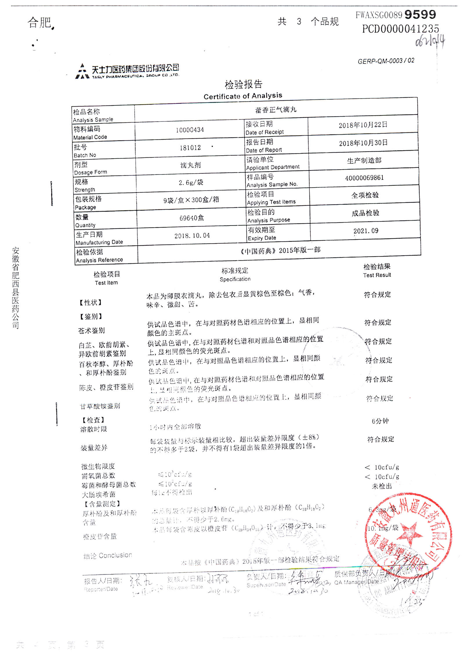 名稱 規(guī)格 批號(hào) 藥檢報(bào)告